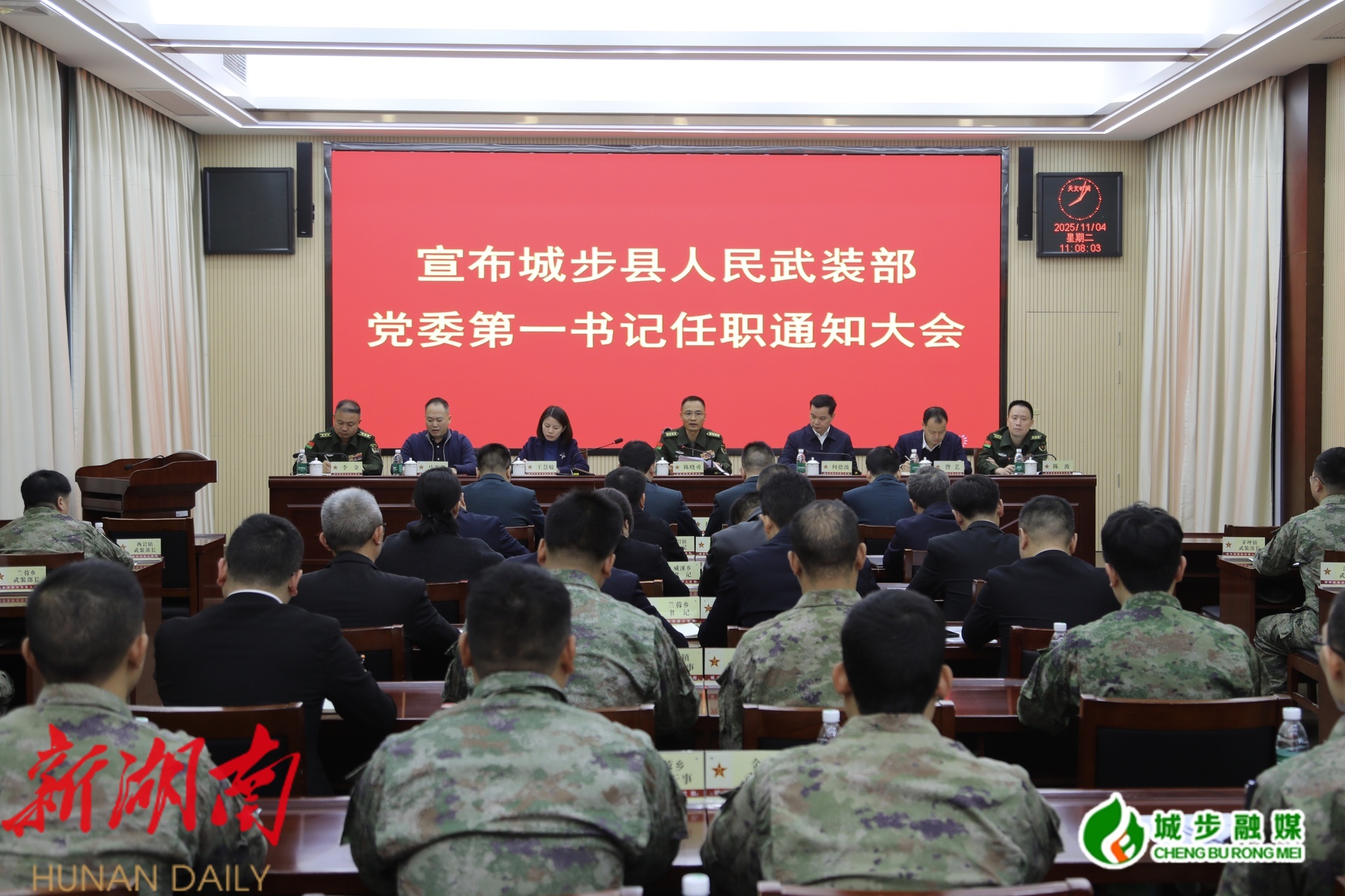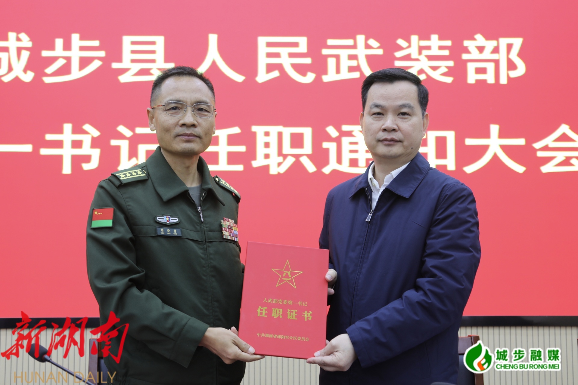 新城步客户端11月4日讯(记者 王蕾婷 刘沛含) 11月4日上午,城步苗族自治县人武部党委第一书记任职通知大会召开。市委常委、军分区大校政治委员陈晓勇出席会议宣读并颁发任职通知书,县委书记何德波同志任中共城步苗族自治县人武部党委第一书记。县委副书记、县长王慧敏,县委副书记、县委统战部部长曾艺,县委常委、常务副县长马忠华,县人武部部长李金等出席会议。县委常委、县人武部政委陈波主持会议。