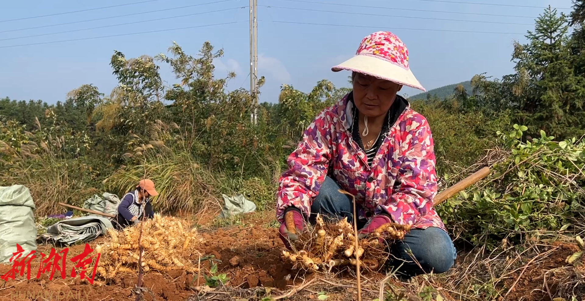 江永融媒11月4日讯(记者 谢文彬 陈平成) 连日来,在江永县潇浦镇回岗村的田间地头弥漫着泥土与药香交织的气息。农户们趁着晴好天气弯腰采挖,将一根根肥硕饱满的玉竹从土中捧出,整齐码放,脸上写满丰收的喜悦。