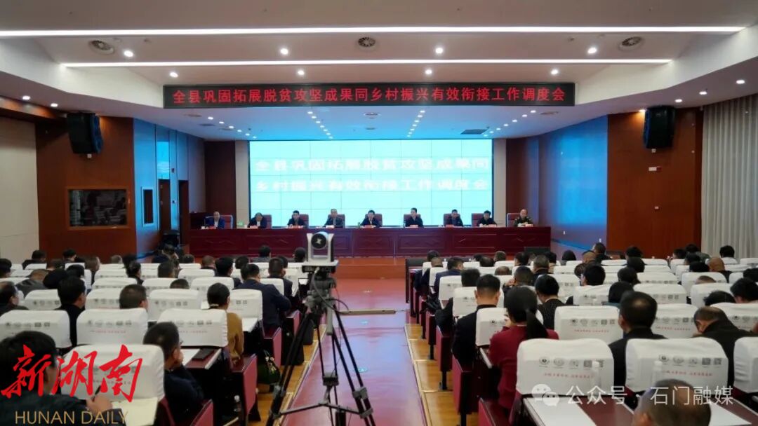 新石门客户端11月4日讯(记者 郑凯洲 王章建)11月3日,全县巩固拓展脱贫攻坚成果同乡村振兴有效衔接工作调度会召开,深入学习贯彻习近平总书记关于“三农”工作的重要论述,全面落实上级有关会议精神,分析研判当前形势,安排部署后段工作。县委书记吴兴国出席并讲话,县委副书记、统战部部长廖江华主持。