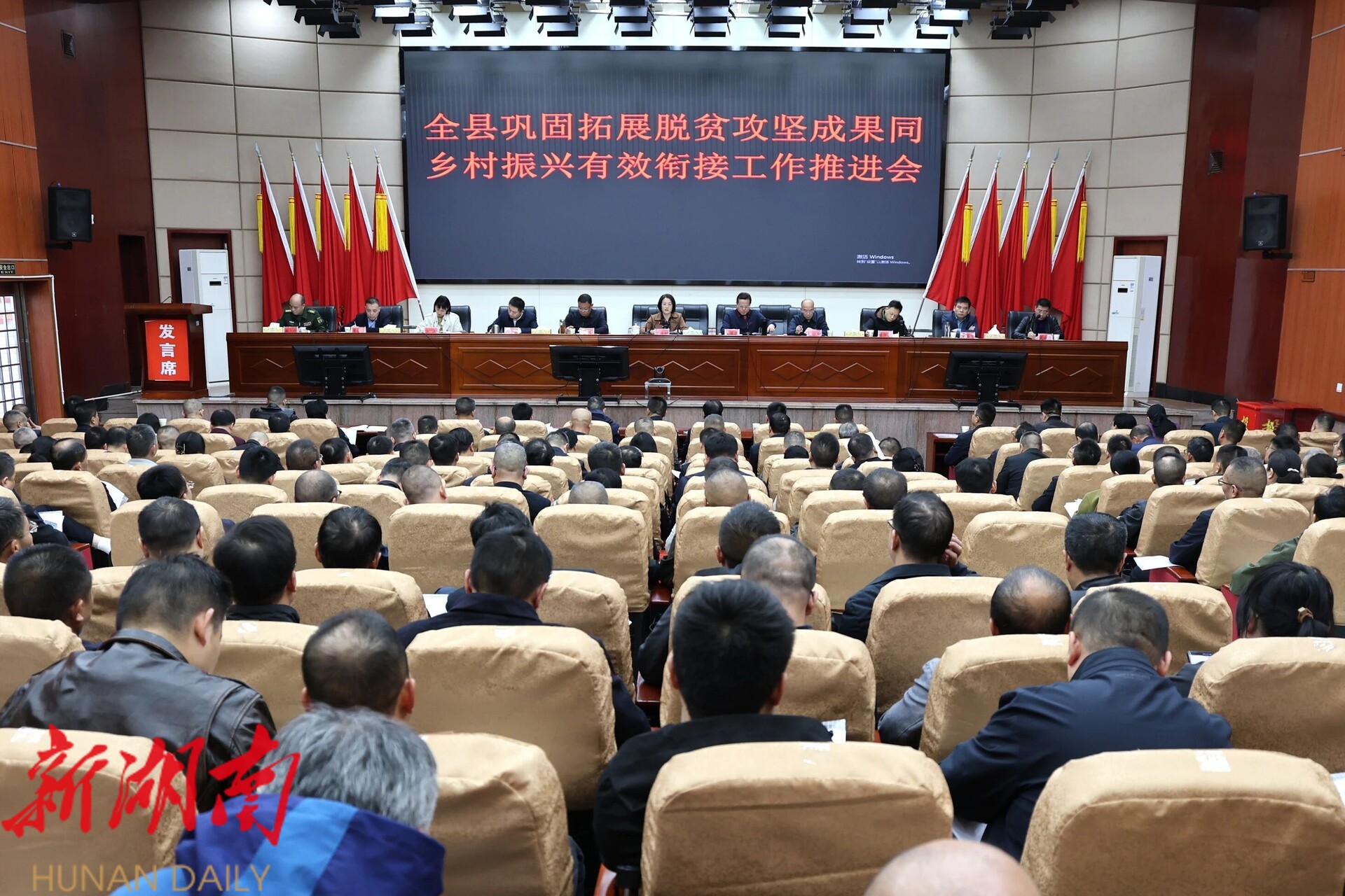 新新邵客户端11月4日讯(记者 何雯 赵少波)11月3日,新邵县巩固拓展脱贫攻坚成果同乡村振兴有效衔接工作推进会召开。县委书记黄海蓉出席会议并讲话,她强调,要全面贯彻落实上级决策部署,进一步扛牢政治责任,明确目标任务,强化担当作为,紧盯工作重点,毫不松懈巩固拓展脱贫攻坚成果,有力有效推进乡村全面振兴。县委副书记、统战部部长王振波主持。县人大常委会党组书记、主任刘长峰,县政协党组书记、主席邹功树,县领导贺雄、曾律玮、刘丹、罗伟宏、黄安石、蒋命贤、姚志刚出席。