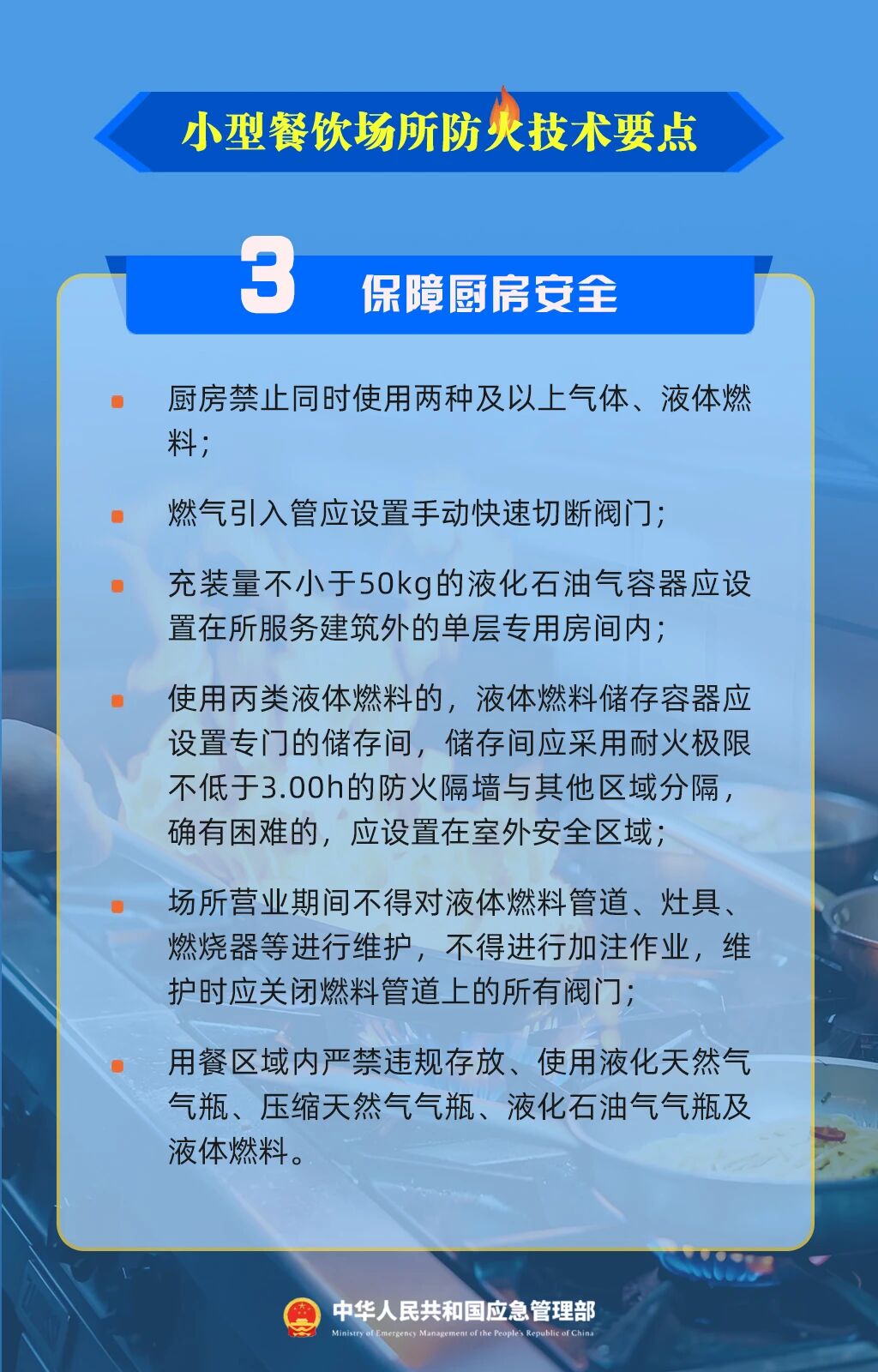 近日,国务院安委会办公室发布关于坚决防范遏制小型餐饮场所群死群伤火灾事故的通知,要求深刻汲取事故教训,坚决防范遏制重特大火灾事故发生;强调各地区要组织小型餐饮场所开展自查自改,对照国家消防技术标准和《小型餐饮场所防火技术要点》,主动查改安全隐患,加强自律管理。这份小型餐饮场所防火技术要点,相关商户都应了解!