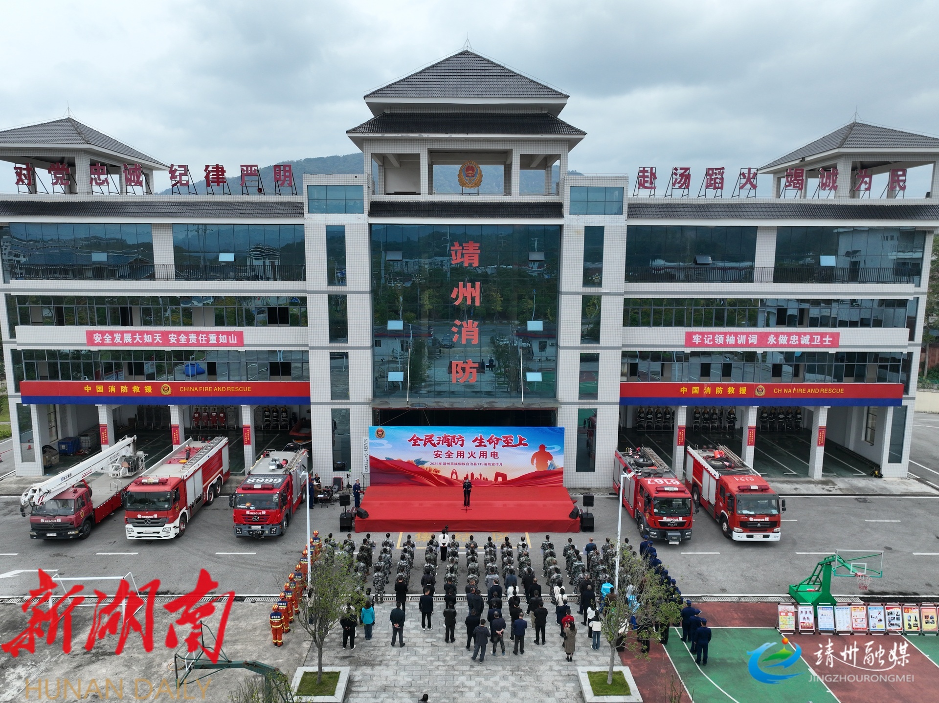 靖州融媒11月5日 (记者 钦苏芬 胡耀文 通讯员 杨宇卓)11月5日,靖州苗族侗族自治县“119” 消防宣传月启动仪式在县消防救援大队举行。来自全县各乡镇(便民服务中心)、重点单位代表及16支乡镇专职消防队齐聚一堂,通过技能比武、知识普及、装备体验等多元形式,筑牢全县消防安全防线。