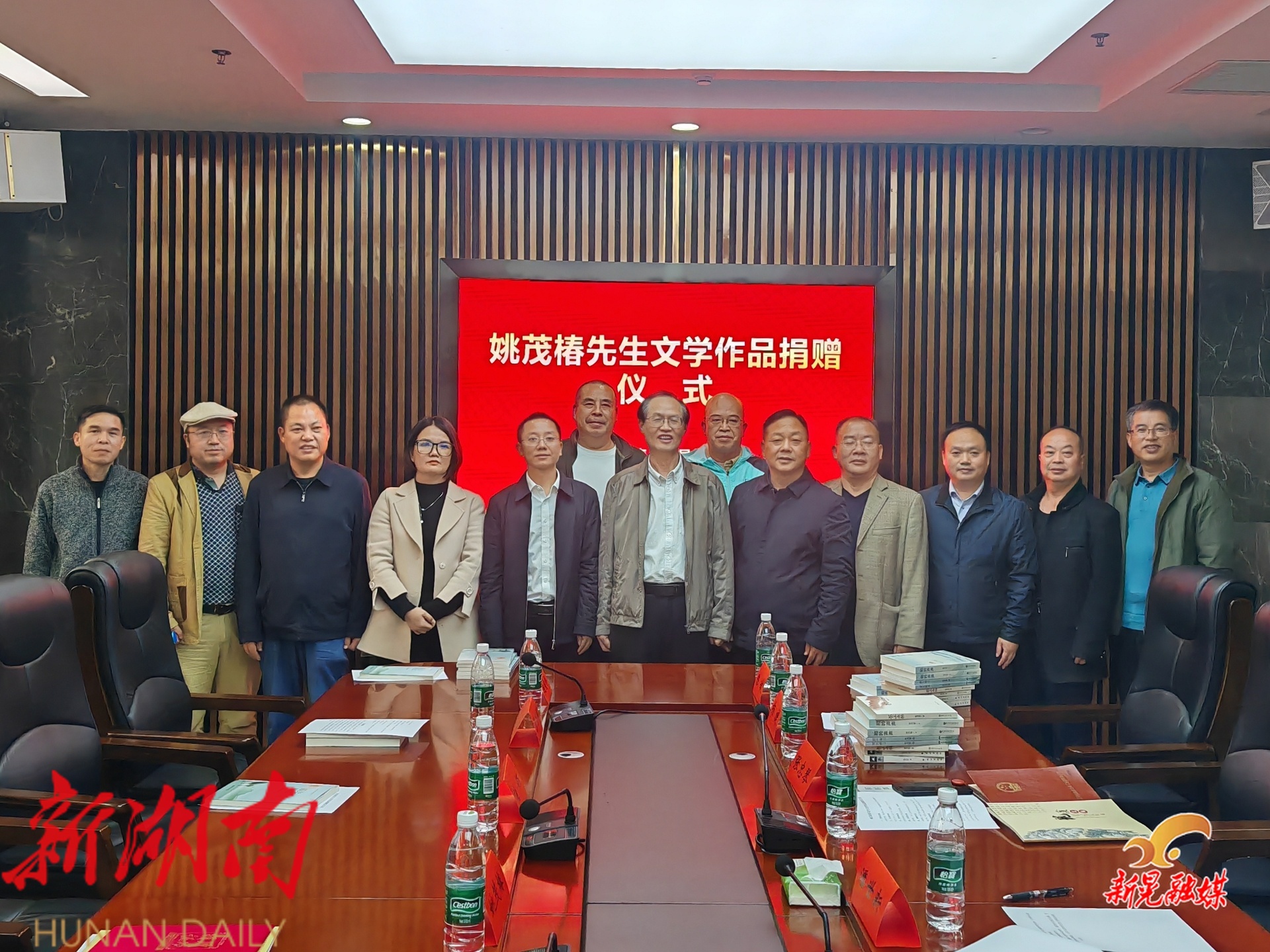 新晃融媒11月6日讯(记者:杨长钊)11月5日,新晃籍作家姚茂椿先生为县档案馆和图书馆捐赠文学作品。县领导潘世新、夏崇源参加。