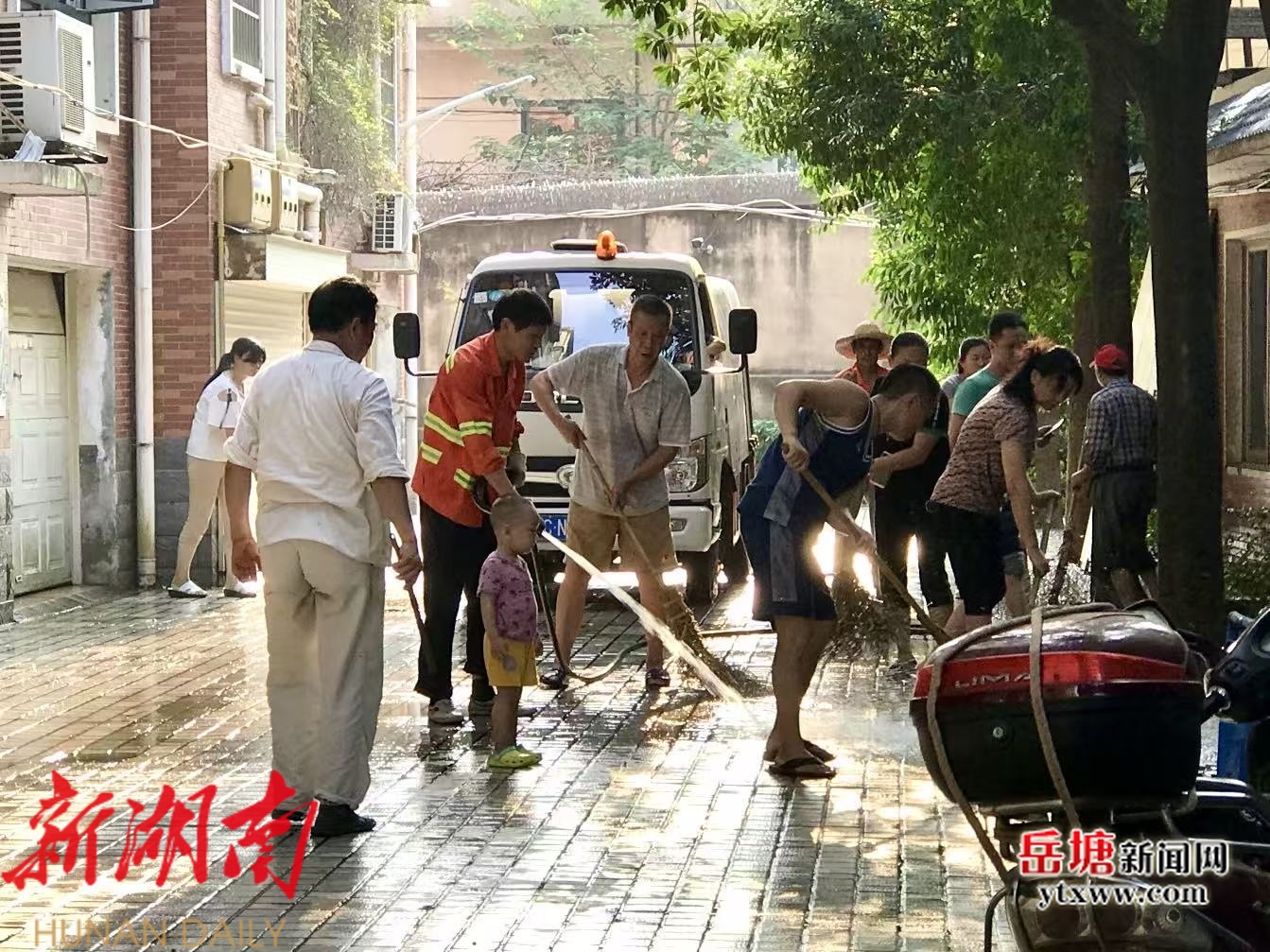 三湘鑫苑小区居民清洗小区地面