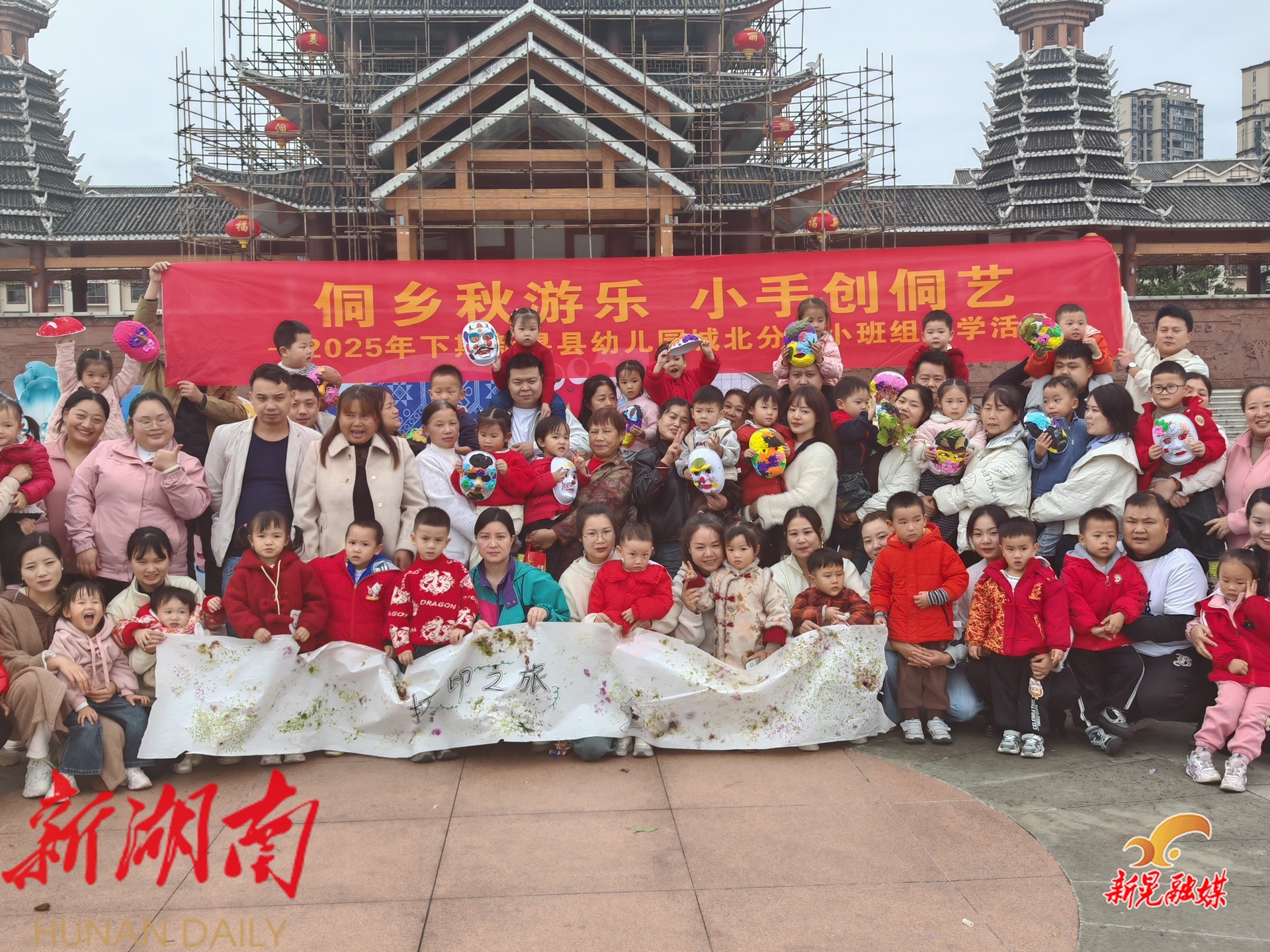 新晃融媒11月6日讯(记者:舒昊)为丰富幼儿生活,加深对侗族文化的认知与热爱,11月5日,县幼儿园城北分园举办以“侗乡秋游乐·小手创侗艺”为主题的亲子研学活动。孩子们在老师和家长的陪伴下,通过亲身体验和动手操作,感受了一场别开生面的侗族文化艺术探索之旅。