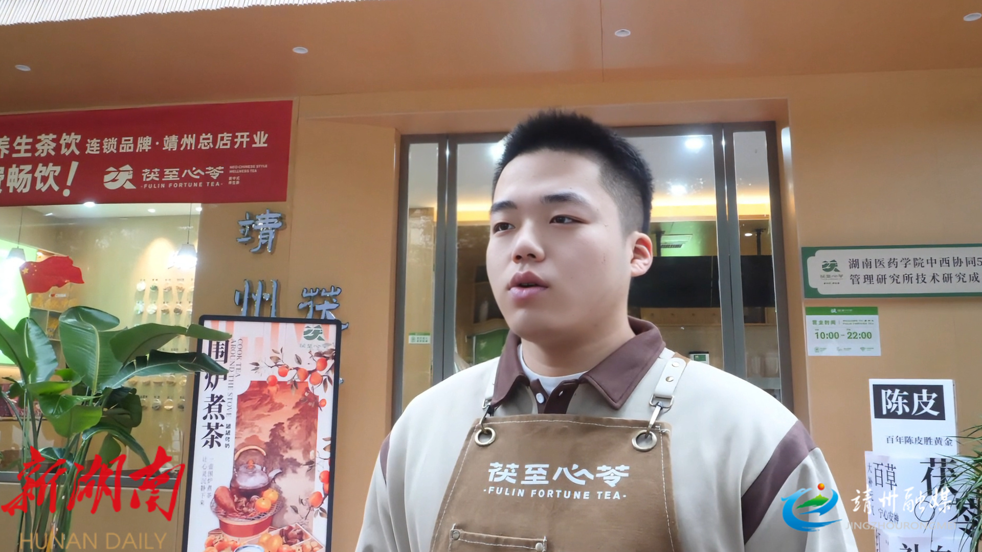 靖州“茯至心苓”新中式养生茶饮靖州总店店长涂佳巳对即将到来的赛事表示支持(孙文月 摄)