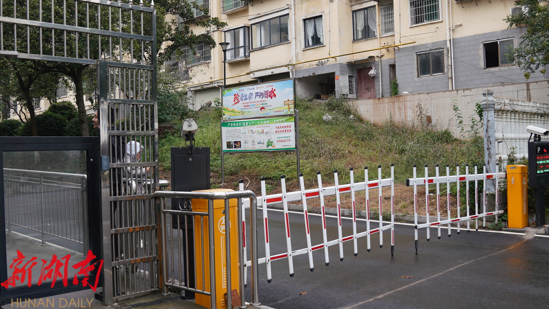 桃花源小区门口焕新升级的门禁系统和车辆进出道闸