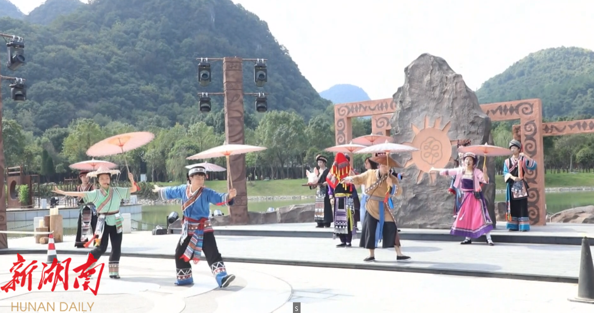 九嶷山景区还新打造南风集这一文旅商业综合体,汇聚15家特色门店与5家非遗工坊,业态丰富且充满地域特色。舜心舜意文创商店内,九嶷山主题文创产品精致实用,尽显本土风情;江永过山瑶油茶、衡阳小炒、长沙臭豆腐等美食香气扑鼻,吸引游客驻足品尝;轮番上演的民俗表演精彩纷呈,成为游客“打卡”的新地标。“