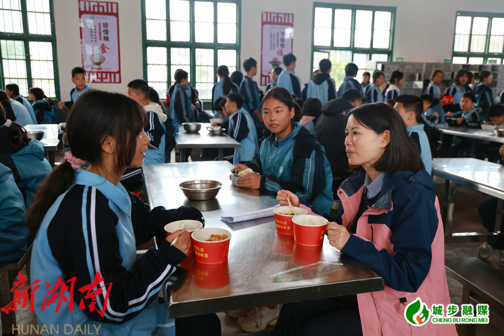 长王慧敏在汀坪中学与学生一同用餐