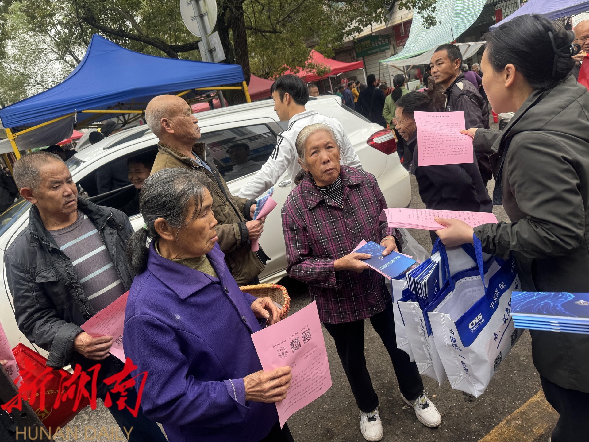 新桂阳11月7日讯(通讯员 尹友飞 肖小兰)“大家好,2026年度城乡居民医保缴费已经开始啦!今年缴费标准还是400元一人,请大家积极参保,做到应缴尽缴。缴一份医保,就是给自己和家人买一份平安保障!”11月6日,在桂阳县樟市镇的圩场上,镇医保宣传工作队正利用赶圩日人流密集的时机,向前来赶集的群众耐心讲解医保政策。洪亮而亲切的乡音在熙攘的集市中回荡,吸引了不少村民驻足咨询。