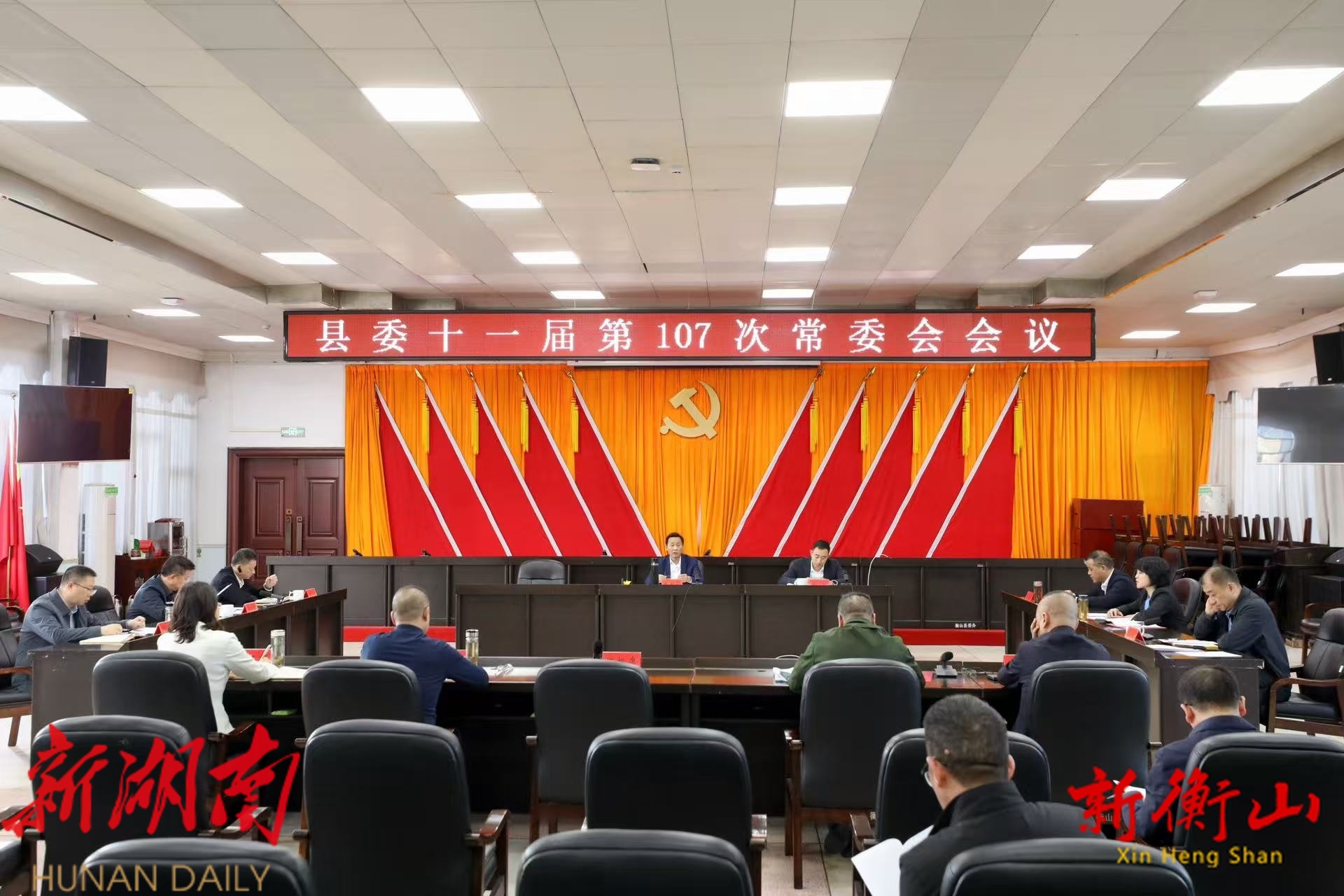新衡山客户端11月7日讯(记者:刘永欢 周彭斌)11月6日,衡阳市政协副主席、衡山县委书记戴新贤主持召开县委十一届第107次常委会会议,传达学习党的二十届四中全会精神、习近平总书记近期重要讲话重要指示精神和相关会议精神;传达学习2025年衡阳市三季度经济形势分析会精神,研究全县三季度经济形势;听取关于国防动员能力评估、全县普通高中高质量发展等相关情况汇报。