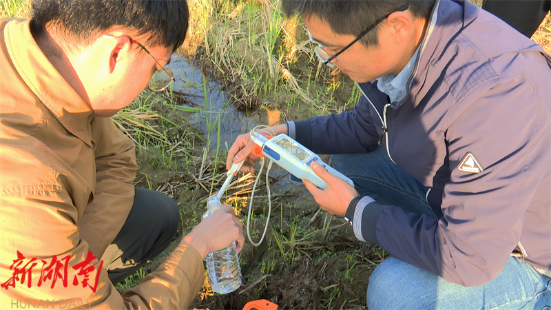 走进新墙镇三合村实验田,湖南农业大学专家团队正在取样测试土壤的pH值,为后续耕地土壤酸化治理工作提供数据支撑。