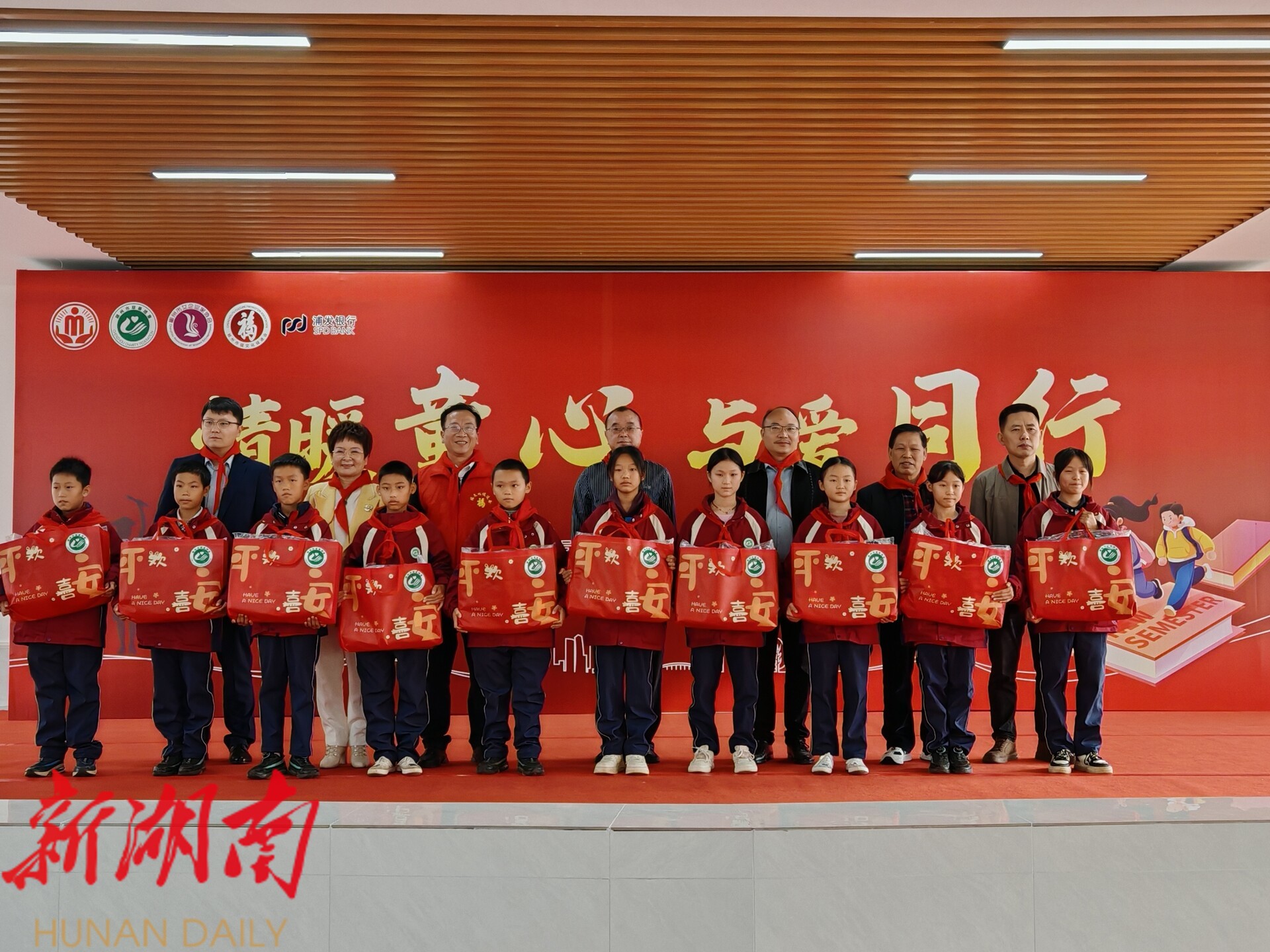 活动现场,学生代表表演了《我的纸飞机》、《春禧》等节目,并为嘉宾佩戴红领巾。市慈善总会及爱心企业、协会为困境儿童捐赠物资与善款,发放爱心校服及慰问品。