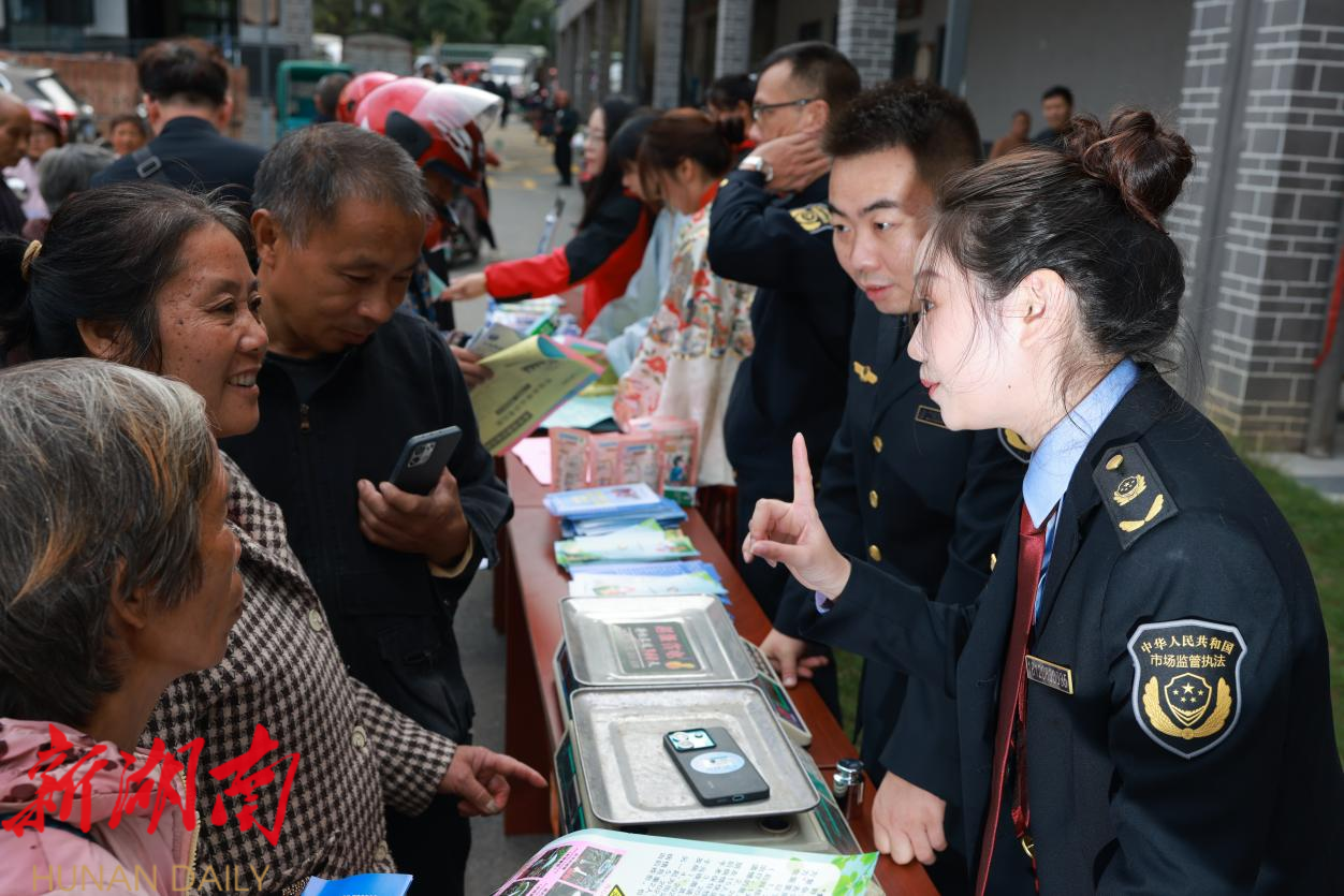 在南风集,身着古装的工作人员化身“维权使者”,通过“古代纠纷小故事”引出《消费者权益保护法》条文,用“舜帝断案”的趣味演绎,讲解旅游消费中“七天无理由退货”“欺诈赔偿”等核心知识点,生动的表演吸引了大批游客驻足观看。期间还穿插“有奖问答”,在欢笑声中给游客们普及了“如何保留消费凭证”“投诉举报渠道有哪些”等实用知识。“既能陪孩子玩游戏,又能学到维权知识,小奖品文创书签还印着九嶷山美景,太有纪念意义了。”游客王女士笑着说。