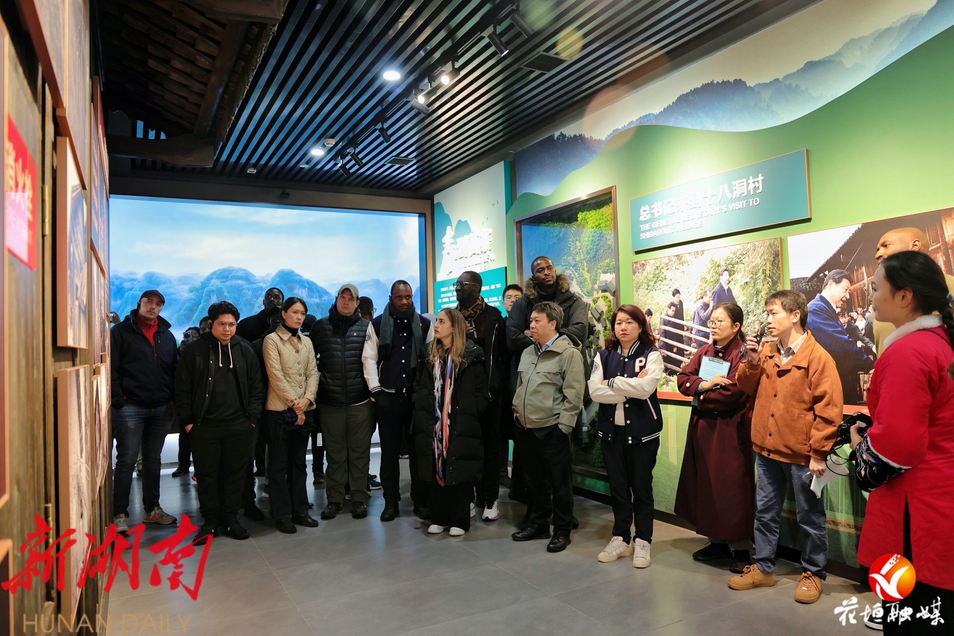 在十八洞村,研修班一行沿着习近平总书记的考察足迹来到梨子寨,先后走进“大姐”石拔三家、十八洞村苗绣乡村振兴示范基地、精准坪广场等地,聆听十八洞村的幸福故事,见证古老苗寨的幸福蝶变。