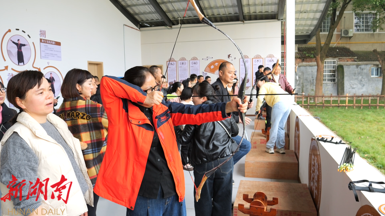 在逸迩知行园,干部职工们参观了园内的三馆七坊,体验传统射箭活动,近距离感受传统文化的魅力。