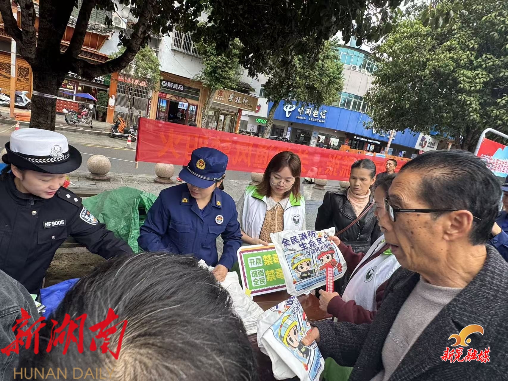 新晃融媒11月8日讯(通讯员:杨璐)为筑牢禁毒与消防安全“双防线”,11月7日,新晃禁毒专项组联合晃州镇禁毒办、微爱志愿者协会及虹雨社会工作服务中心等部门,在夜郎广场联合开展“禁毒+消防”主题宣传活动,通过多元形式让禁毒知识与消防技能深入人心。