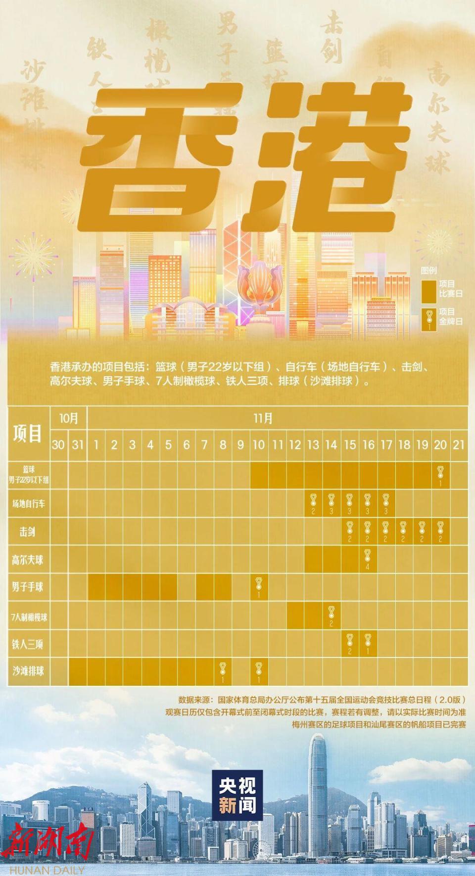 第十五届全国运动会将于2025年11月9日至21日在广东、香港、澳门举行,这也是全运会历史上第一次走进香港、澳门。