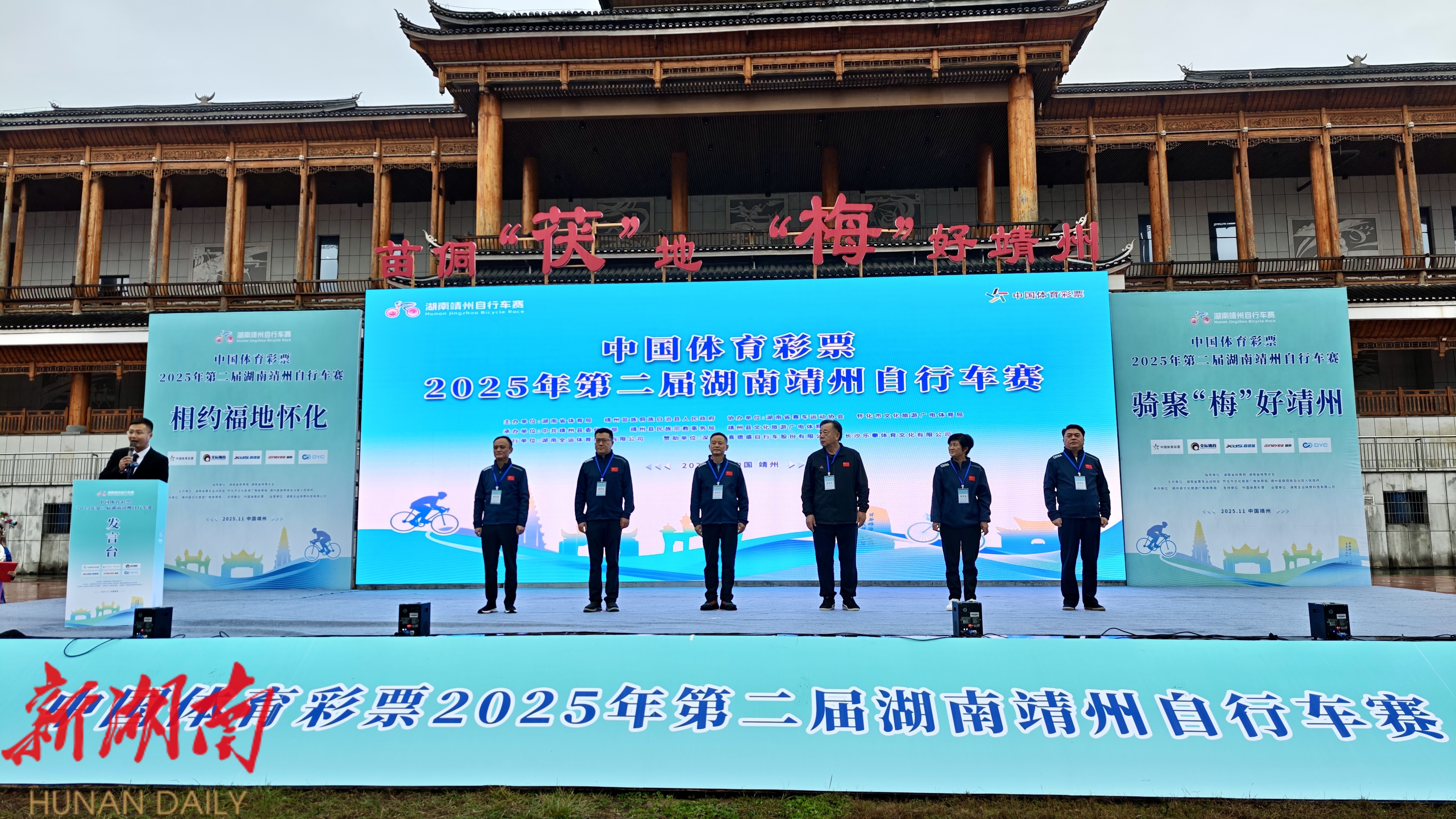 靖州融媒11月9日讯 (记者 胡耀文 蒲湘萍 张秦 夏源懋)11月9日,中国体育彩票2025年第二届湖南靖州自行车赛激情开赛,来自全国23个省区及香港特别行政区的400余名骑手齐聚苗侗福地——靖州苗族侗族自治县,共赴这场“梅”好的骑行之约。湖南省体育局青少年体育处副处长、三级调研员李瑞龙,湖南省赛车运动协会主席潘绍钦,怀化市文化旅游广电体育局二级调研员郑玉玲,县委副书记、县长张艳阳,县委常委、宣传部部长田锋,副县长廉剑晖参加。