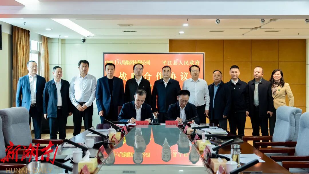 平江融媒11月7日讯(记者 谢鸿)11月7日,平江县人民政府与中铁十八局集团有限公司举行战略合作协议签约仪式。中铁十八局集团副总经理李伟,县委书记刘正仁出席仪式并讲话;中铁十八局集团竹基产业管理部总经理海占忠,县委副书记、县长彭方建分别代表双方签约;县委常委、副县长林洁主持签约仪式。