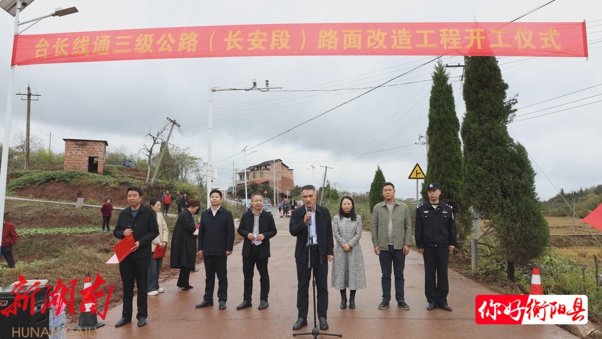 衡阳县融媒11月9日讯(记者:张兴宇 ) 11月9日,台长线通三级公路(长安段)路面改造工程正式开工。该项目起点位于长安乡兴安村,途径长市社区、长安村、大胜村、前进村、紫霞村,终点位于台源社区,全长9.633公里(其中长安段5.881公里,台源段3.752公里),全线采用三级公路标准,工程预算总投资约3450万元,计划工期6个月。项目建成后,将进一步完善区域路网结构,极大改善长安乡的交通条件,有效缩短长安与县城之间的时空距离,提升农村公路服务畅通城乡经济循环的能力,为“四好农村路”高质量发展注入新的强劲动力,助力乡村全面振兴。