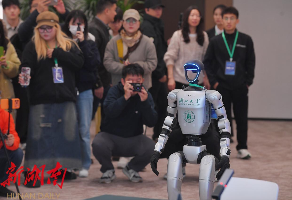 当天上午,湖北大学代表队、松延动力-松美美队、河北大学代表队、松延动力-小诺队分成两组进行比拼,四支队伍中,湖北大学代表队使用了具身智能机器人辩手,其余三支队伍使用了半仿真机器人辩手。