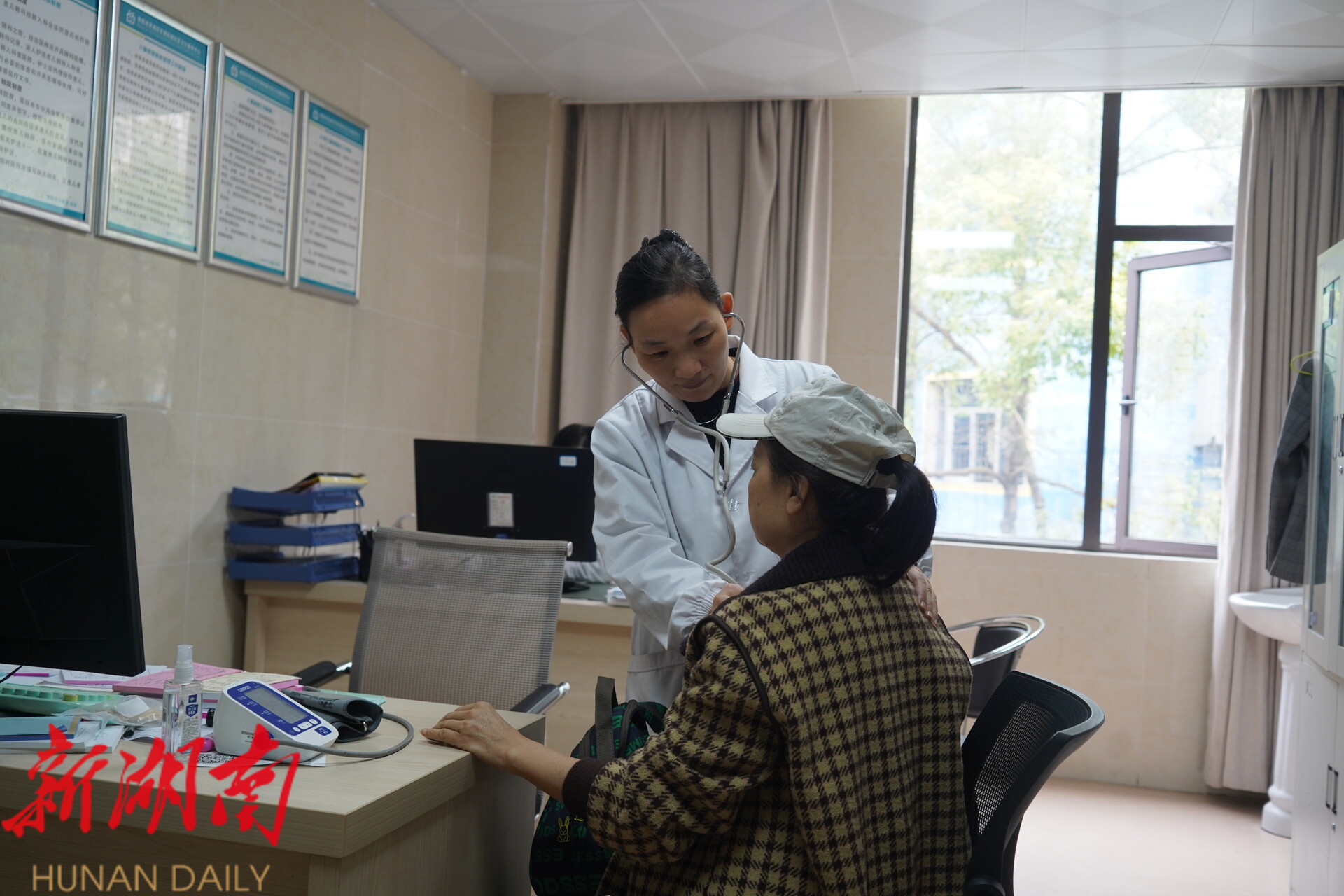下沉专家在诊室为患者听诊
