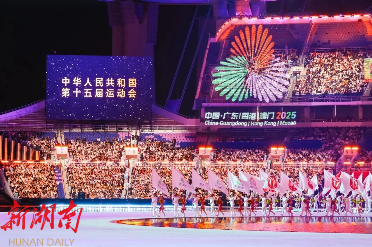 湖南日报·新湖南客户端11月10日讯(通讯员 刘青)11月9日,中华人民共和国第十五届运动会在广州广东奥体中心盛大开幕。本届运动会作为首个由广东、香港、澳门共同承办的全国性大型综合体育赛事,不仅是中国体育最高水平的集中展示,也是展现粤港澳大湾区协同发展成果的重要窗口。