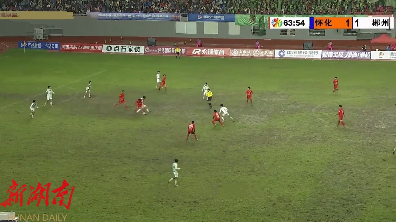湖南日报·新湖南客户端11月10日讯(通讯员 郭伊凡 ) 11月8日晚,“湘超”联赛常规赛第九轮继续上演精彩对决,郴州队开启客场之旅,与怀化队展开正面交锋,最终双方1:1握手言和。