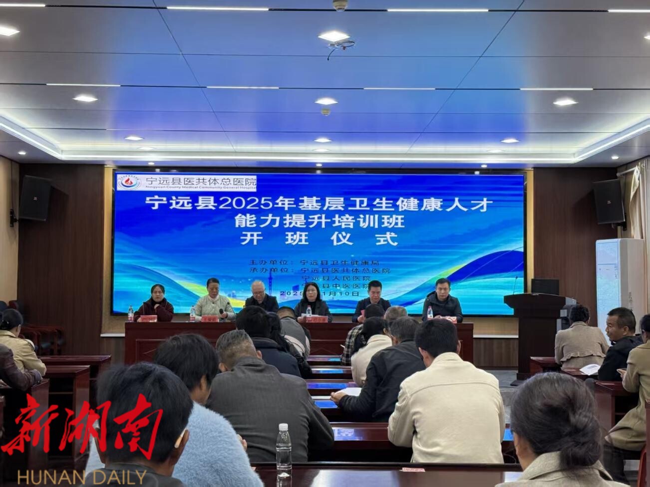 湖南日报·新湖南客户端11月11日讯(通讯员 谢华 蒋慧) 11月10日,由宁远县卫生健康局主办,宁远县医共体总医院牵头,宁远县人民医院、宁远县中医医院及10家乡镇卫生院培训基地联合承办的2025年基层卫生健康人才能力提升线下培训班举行开班仪式。