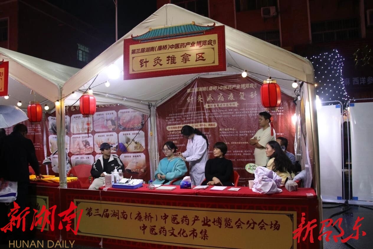 从11月7日开始,廉桥中药材市场长沙大道灯火璀璨,药香弥漫。一场以中医药文化为背景的中医药文化市集在这里热闹启幕,将传统中医智慧与现代夜市活力相融,为游客送上一场健康文化盛宴。在医疗区内,市中医医院、市人民医院的专家免费为前来的群众提供义诊、体质辨识等专业服务;针灸推拿、耳穴压豆等传统中医技法体验区,更是人头攒动,成为大家的“热门打卡地”。“刚刚体验了针灸和按摩,身心得到了放松,感觉压力都被释放了。”游客李婧高兴地说道。
