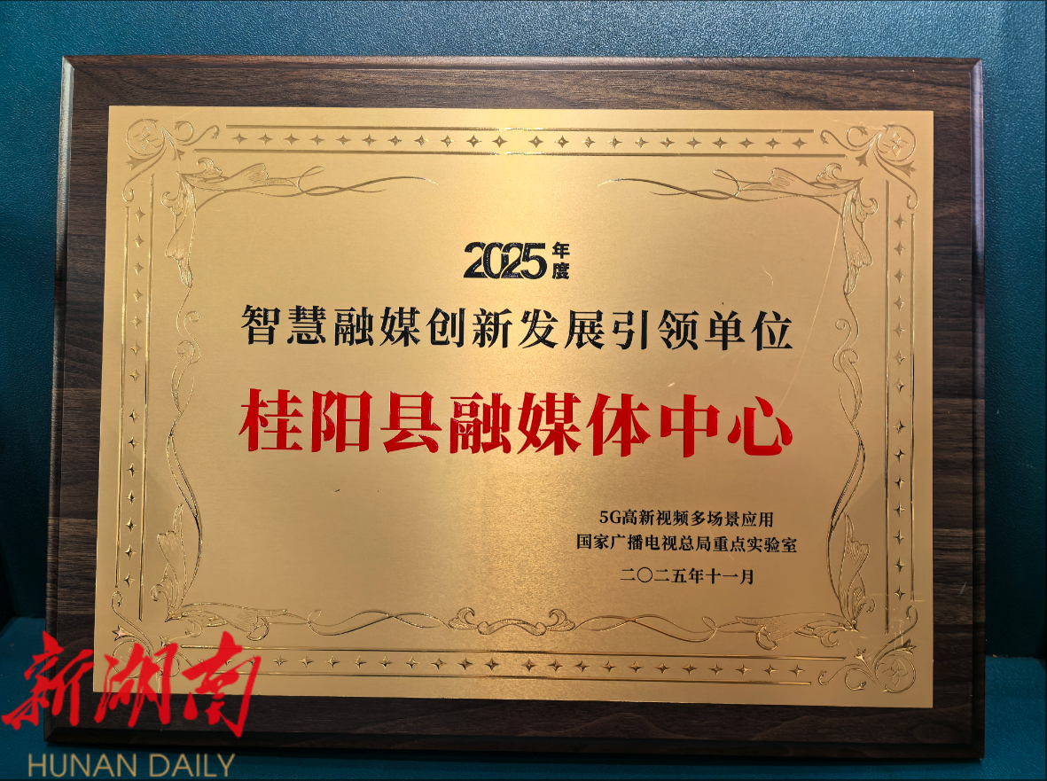 新桂阳11月11日讯(记者 刘泉华 谭明艳)今天,在长沙·中国新媒体大会期间,湖南广播电视台广播传媒中心举办"马栏山智慧融媒创造营·数智赋能实训营",百余全国优秀融媒代表齐聚现场交流学习。活动期间,桂阳县融媒体中心捷报频传,一举收获三项重要荣誉:荣获国家广播电视总局5G高新视频多场景应用重点实验室授予的"智慧融媒创新发展引领单位"称号,获评湖南广播电视台广播传媒中心2025年度"《田间地头大联播》优秀共创单位",中心总编室廖诗卉荣获"优秀通联记者"称号。这三项荣誉的获得,标志着桂阳融媒在媒体深度融合和创新发展中迈上了新台阶。