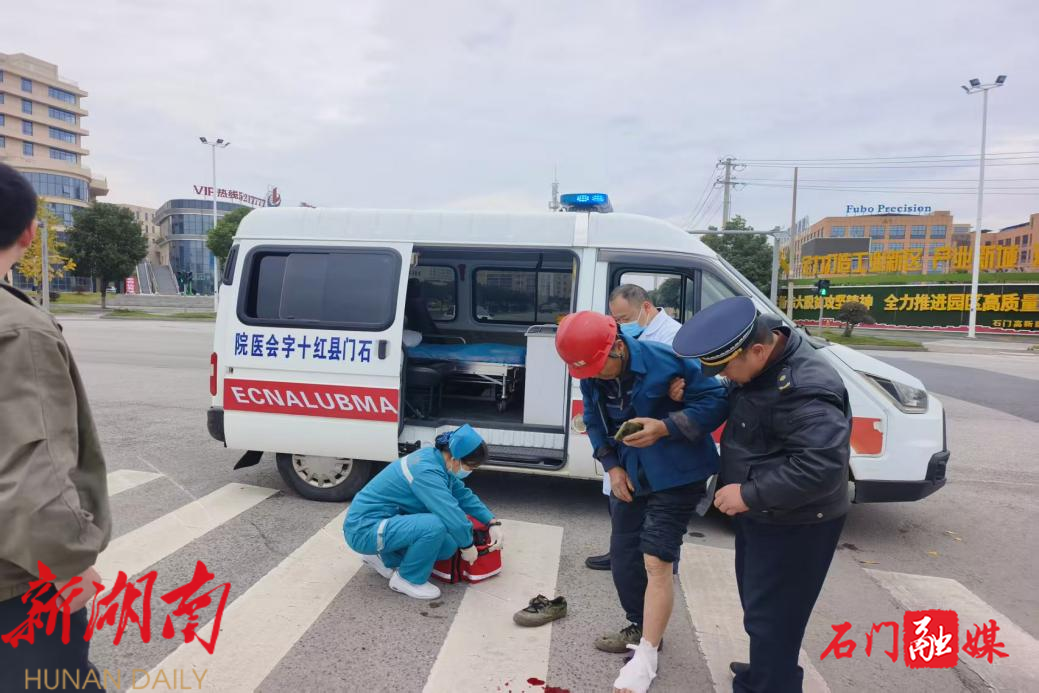新石门客户端11月12日讯(通讯员 覃梦竹)11月12日,在石门大道兰香路路段发生一起交通事故,一名售卖橘子的农户驾驶三轮车在过马路时为躲避过路车辆不慎侧翻,情况紧急。恰逢县城管执法局执法人员开展日常路面巡查工作,发现该突发状况后,立即停下执法车辆上前处置。