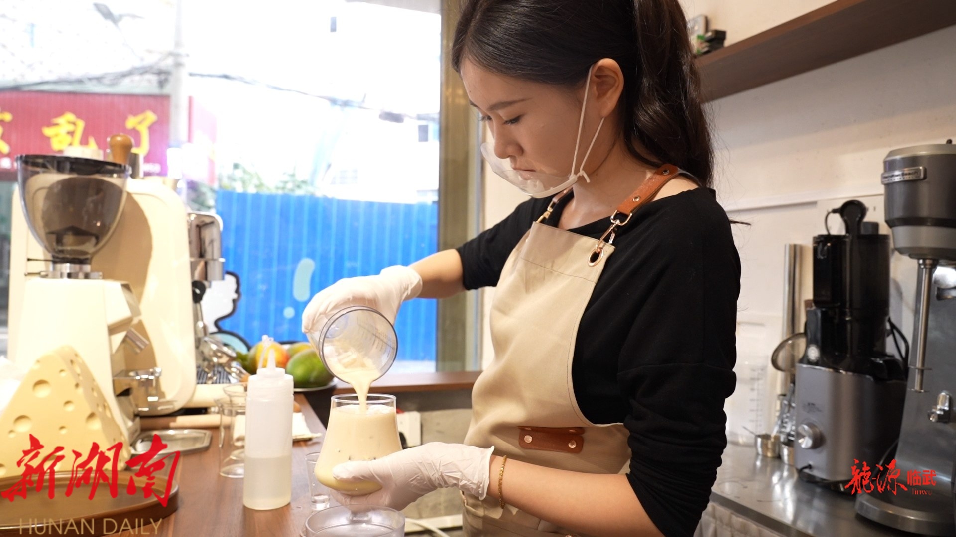 为了圆梦,骆飘飘前往深圳系统学习甜品与咖啡制作技术,并对临武本地的市场做了深入调研。她发现,临武现有的甜品店多以复古风为主,虽具韵味却缺乏新意。于是她决定另辟蹊径,将店铺打造成年轻人喜爱的韩系风格:清新、简约、时尚,营造出轻松愉悦的用餐氛围。骆飘飘介绍,她从灯光设计到室内温度,从韩系女团风海报到特色装饰镜,甚至摆放自己喜欢的卡通元素,每一个细节都经过精心考量,旨在营造轻松愉悦的用餐氛围,吸引年轻人拍照打卡