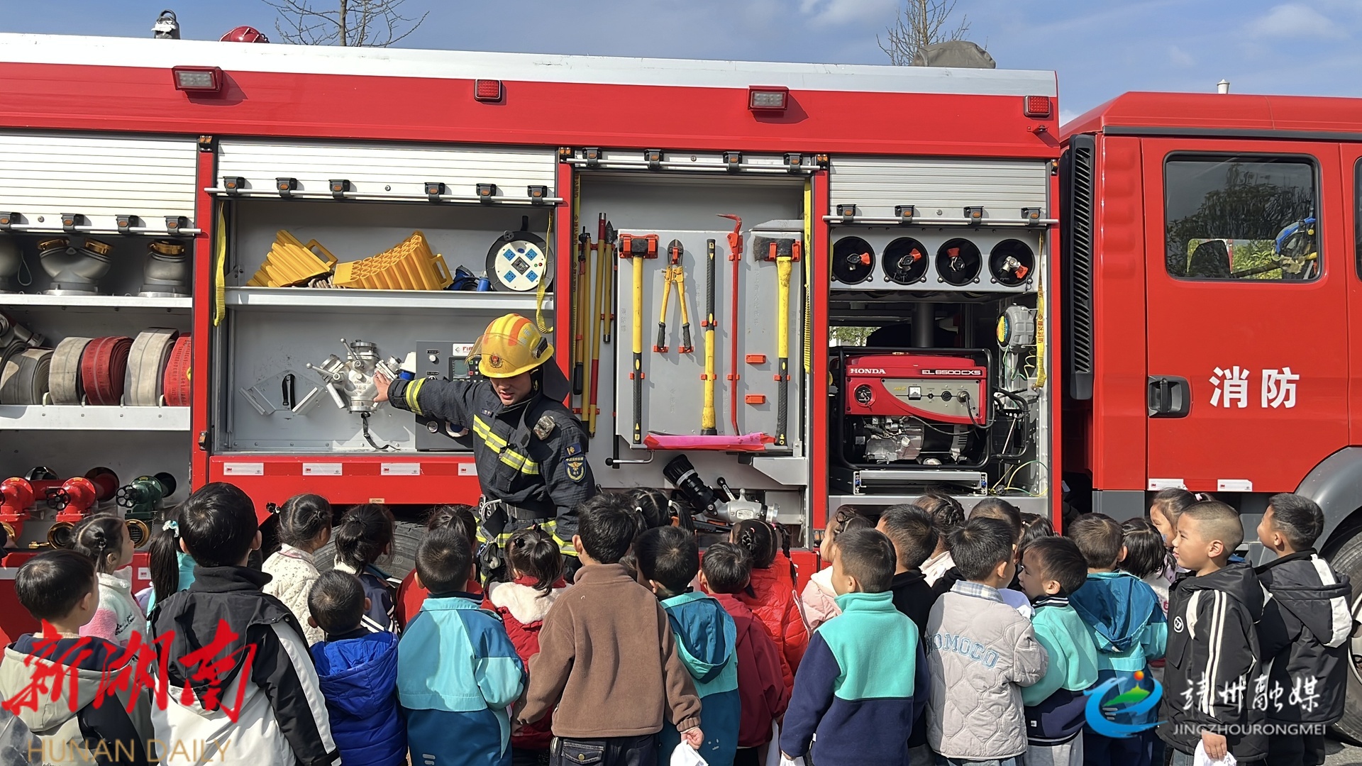 靖州融媒11月12日讯 (通讯员 覃晴 吴虹)11月12日,靖州苗族侗族自治县第二幼儿园开展“党旗映童趣 消防护‘童’行” 消防进校园活动。 县消防救援大队消防员为幼儿讲解火灾的危害、火场逃生自救技巧,展示并介绍灭火器、消防水带、防火服等消防装备,将抽象消防知识转化为具象互动体验,让幼儿在轻松氛围中掌握实用技能。