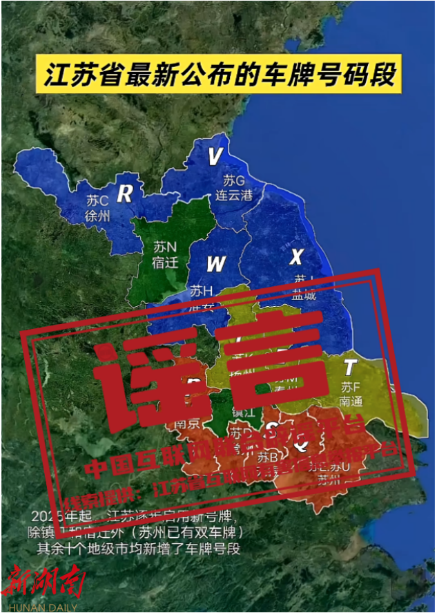 真相: 近日,“江苏车牌将启动新字母号段”“新车牌将于10月份开始陆续使用”等消息,引发网民热议。对此,江苏省交警总队明确表示:江苏目前只有苏州1市拥有2个字母代号,其他城市都只有1个。目前也不会增加。(来源:“网信南京”微信公众号、人民网江苏)