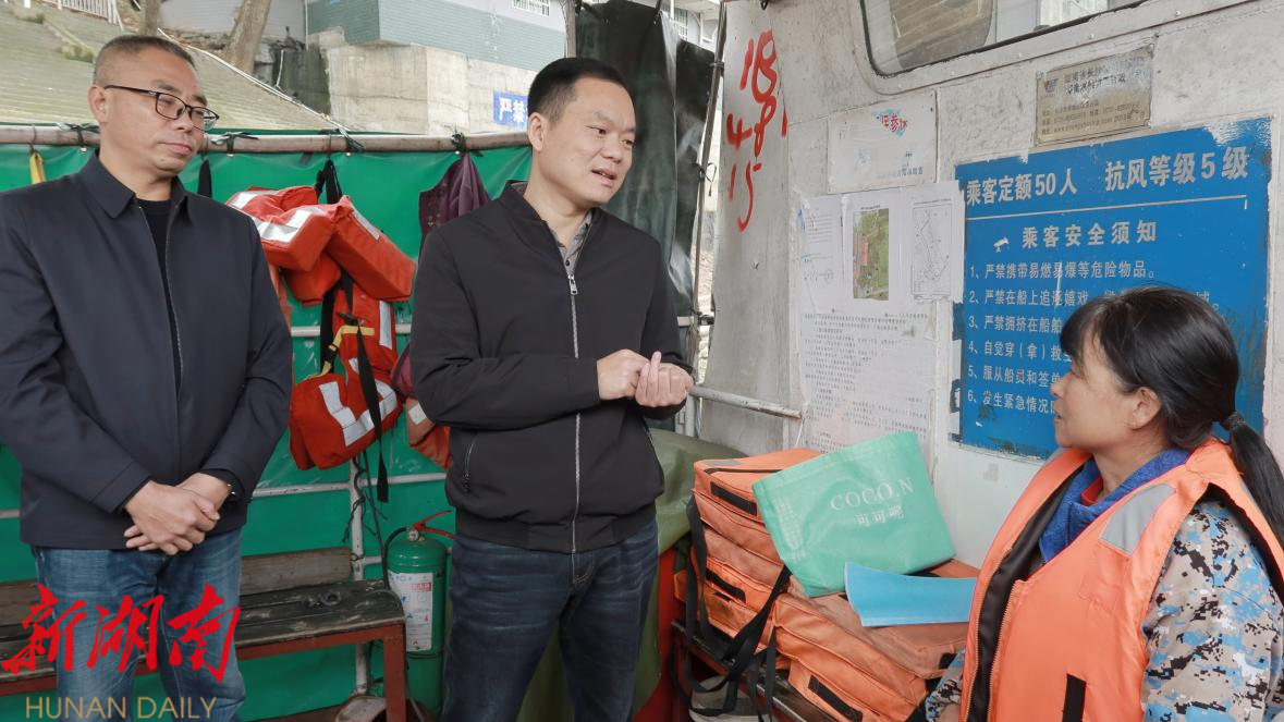 在铜湾镇铜湾码头,胡杰现场察看签单发航、救生衣穿戴等安全管理措施执行情况。他强调,要严格落实船舶适航和船员适任要求,强化安全教育培训, 加强 属地乡镇与行业主管部门协调联动 , 紧盯渡口、码头等重点区域,运用电子巡查与现场检查相结合的方式,常态化开展风险隐患排查治理,织密水上交通安全“防护网”。