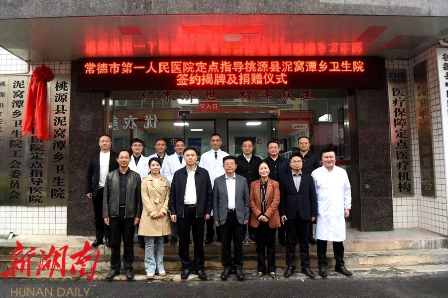 签约结束后,与会领导共同为“常德市第一人民医院定点指导医院”揭牌并合影留念,标志着两院深度协作迈入实质性推进阶段,也为泥窝潭乡医疗卫生事业发展注入了强劲动力。