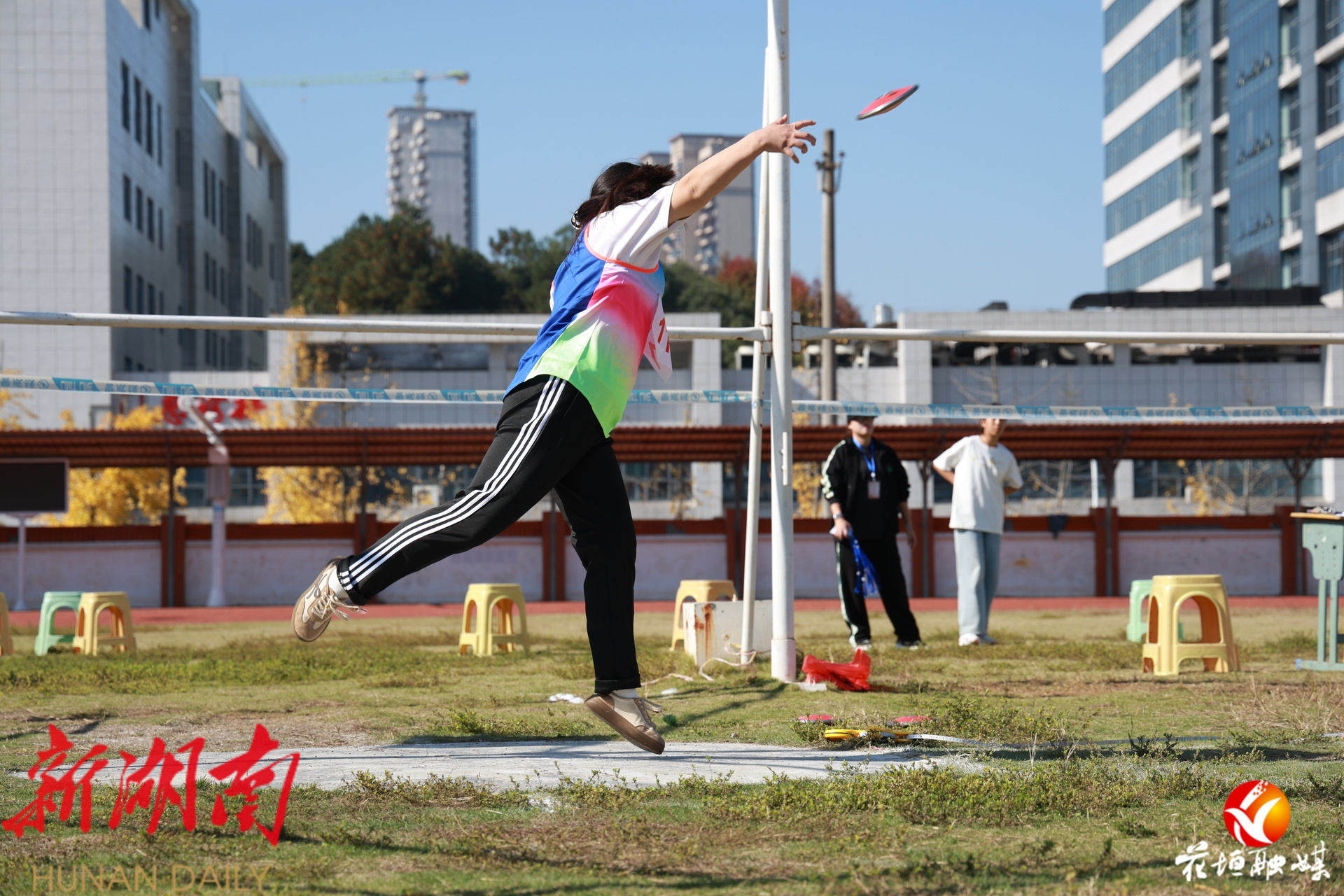 另一边的花垣县民族中学赛场,力量与技巧的较量正悄然上演。铁饼项目的运动员们凝神聚气,奋力一掷,铁饼在空中划出优美弧线,最终稳稳地砸落在远处的草地上。