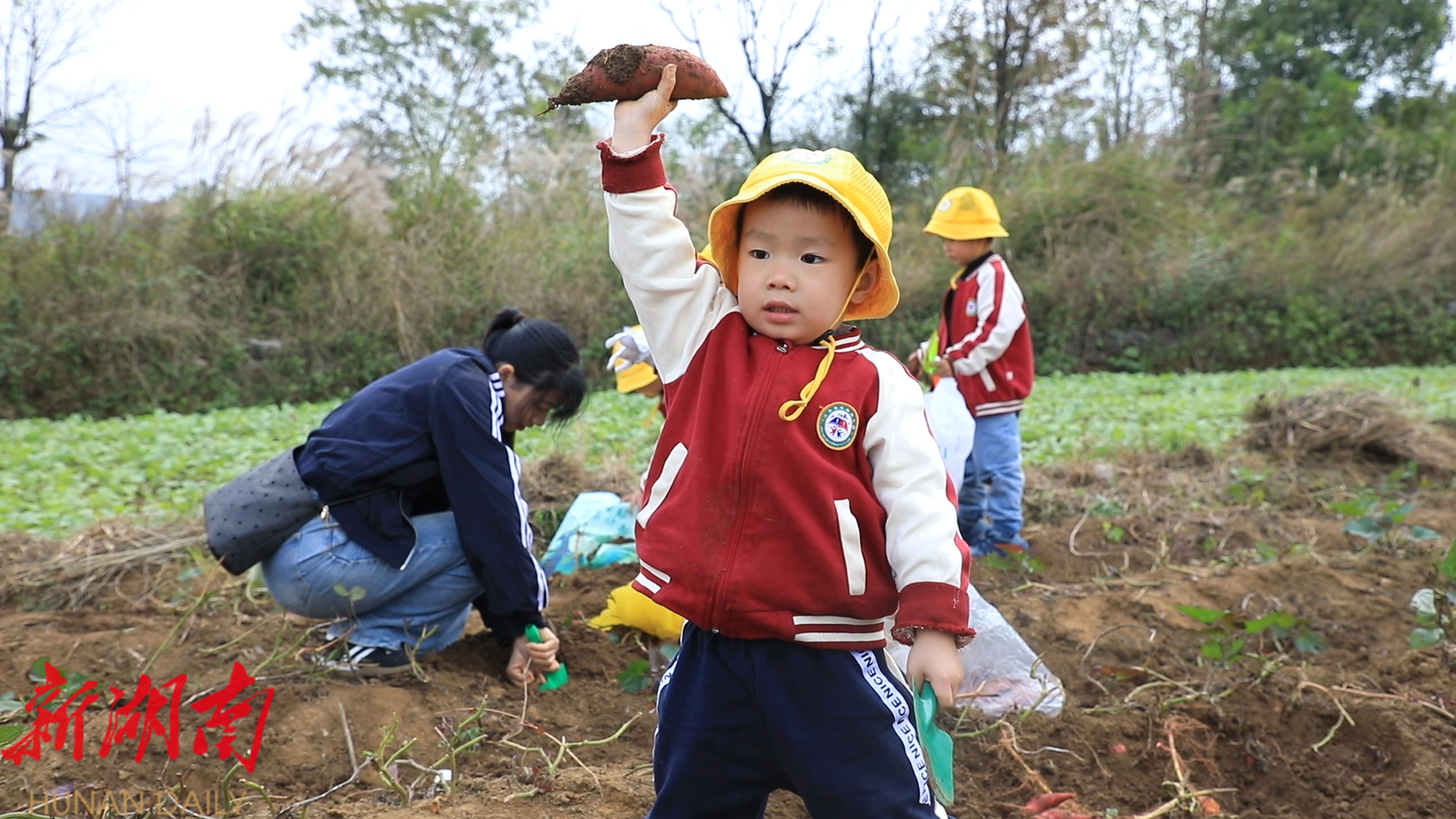 江永县中心幼儿园中(3)班李方赫兴奋地说:“今天挖红薯太开心啦!我才知道红薯藏在泥土里,胡萝卜和花生也是‘土里长’的!”