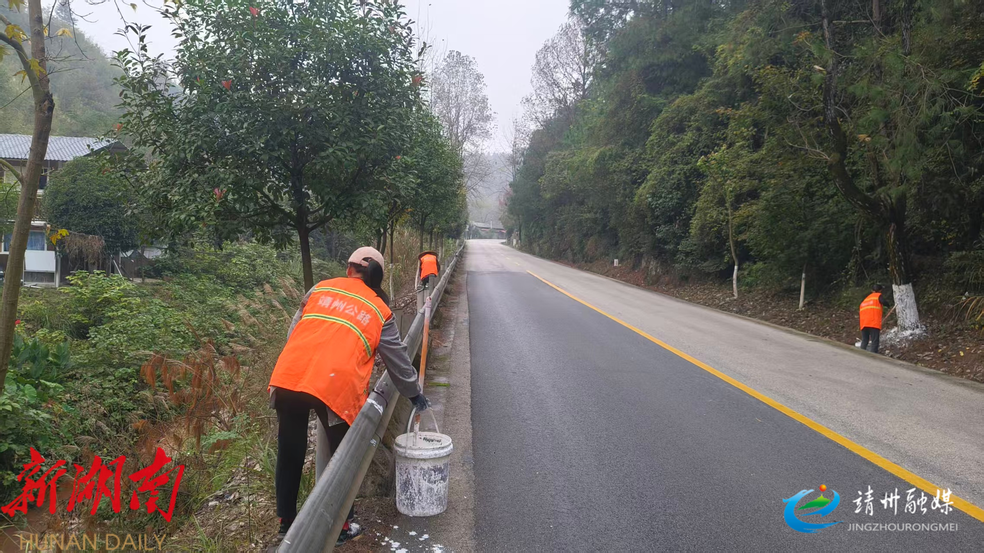 靖州融媒11月13日讯 (通讯员 王静 热娜古丽·阿不都拉)11月13日,靖州苗族侗族自治县公路建设养护中心组织养护人员对辖区国省干线公路沿线行道树开展集中刷白作业,为行道树穿上“防护白装”。