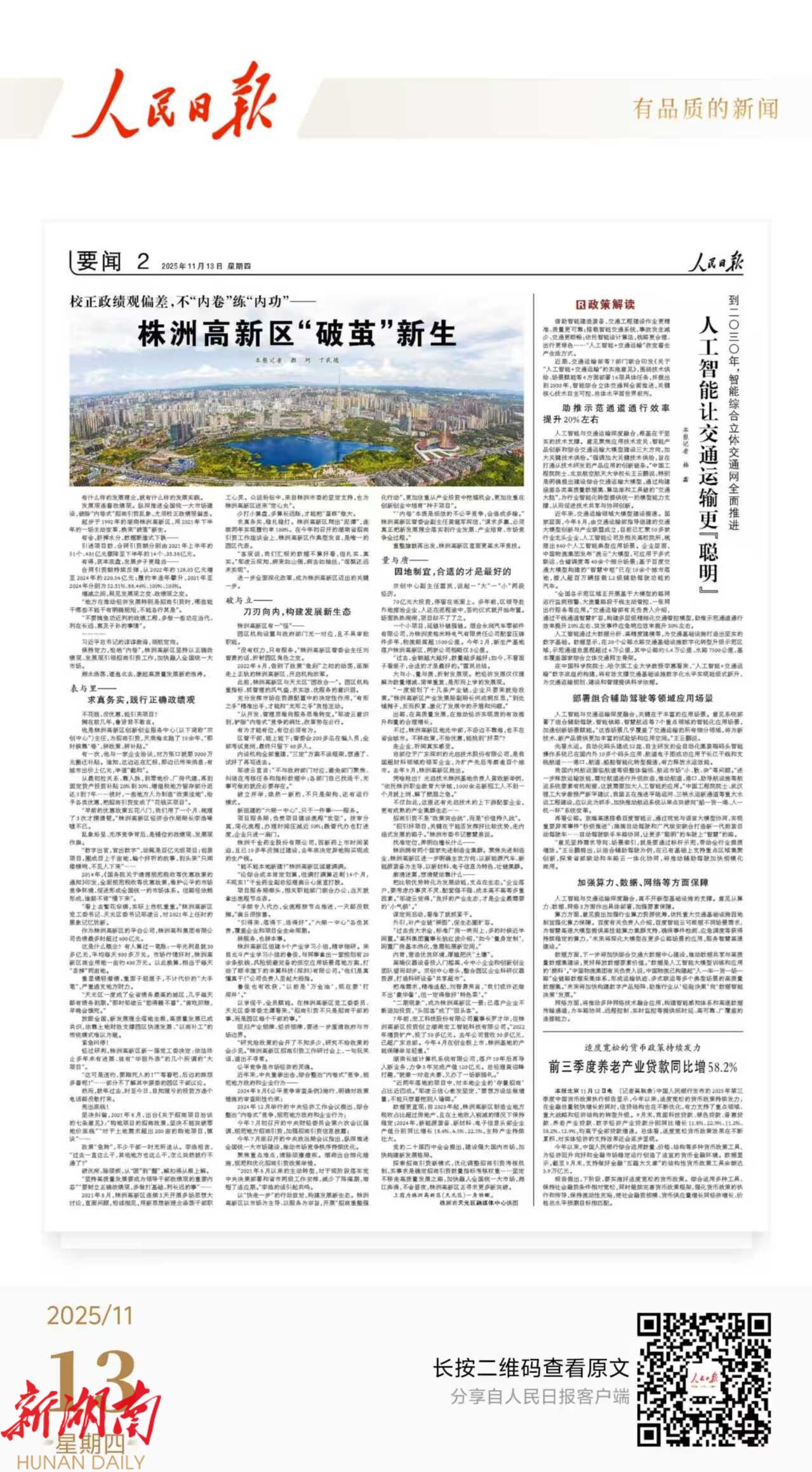 今天,《人民日报》刊发文章 《校正政绩观偏差,不“内卷”练“内功”——株洲高新区“破茧”新生》报道了 株洲高新区招商引资工作, 原文如下: