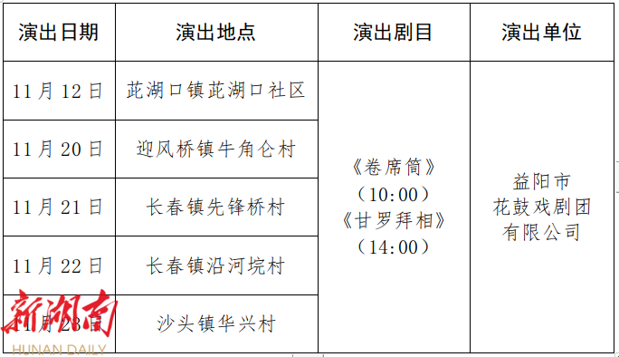 好戏连台!益阳花鼓戏下乡巡演,资阳区场次别错过