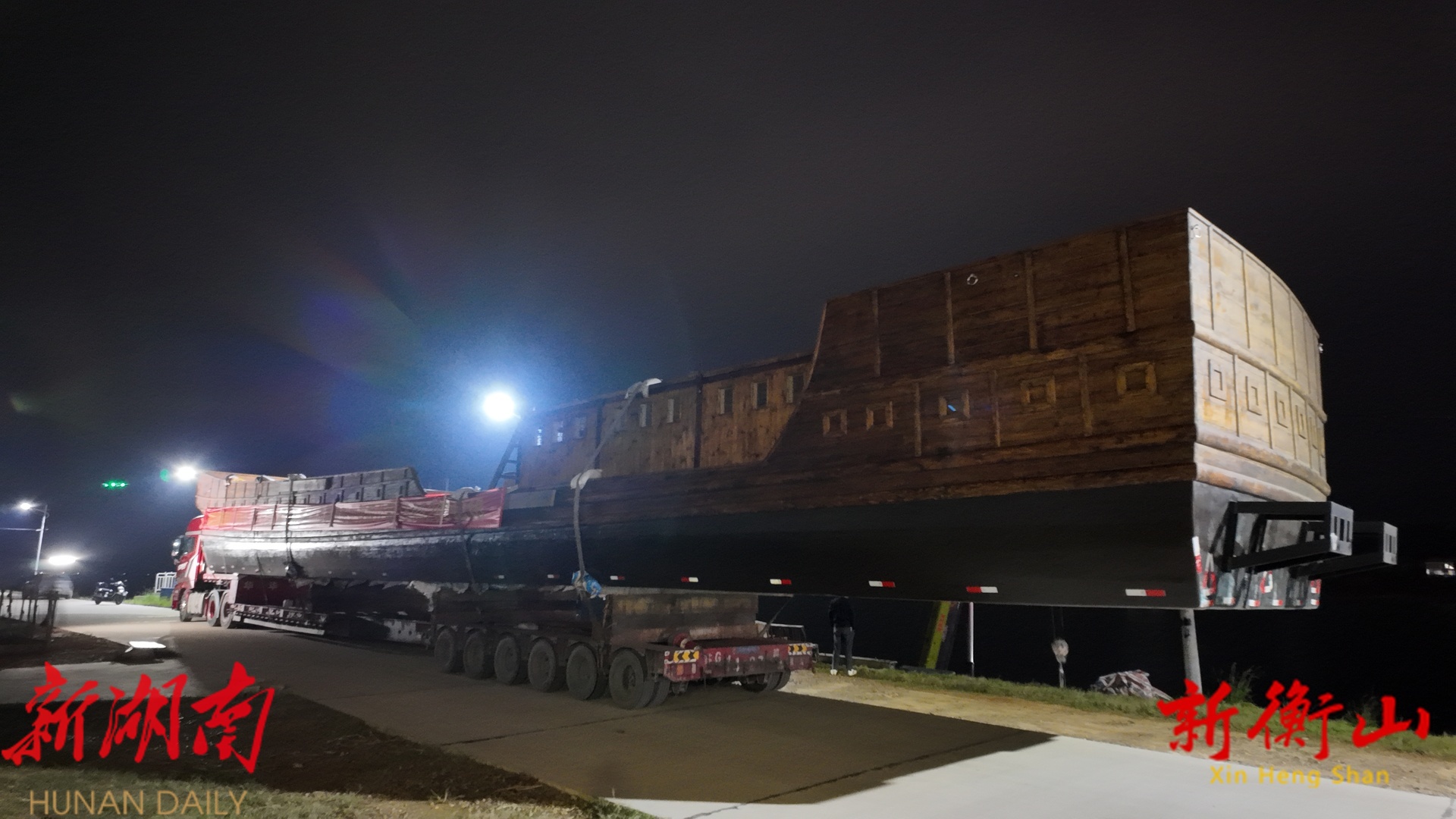新衡山客户端11月14日讯(记者:旷雨澄 蒋鹏 周继晋)龙腾湘江,潮起衡山。11月13日凌晨,衡山渡景区在湘江之畔正式举行“衡山渡”号渡船下水仪式,为即将开业的衡山渡景区完善水上表演舞台。