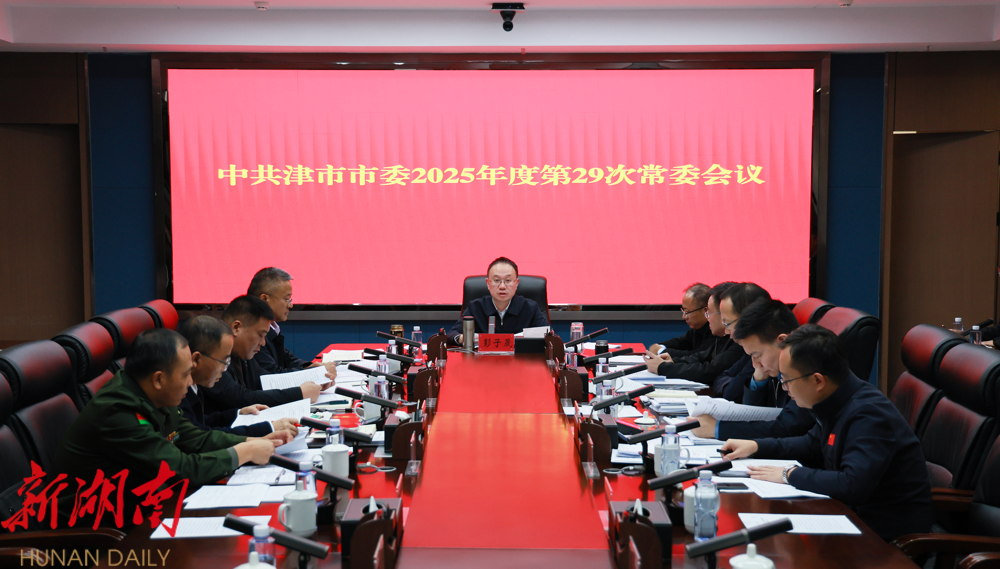 津市融媒2025年11月10日讯(记者:海原)11月7日,市委书记、市长彭子晟主持召开中共津市市委2025年度第29次常委会会议,传达学习习近平总书记近期重要讲话、重要指示精神,研究津市市贯彻落实意见。