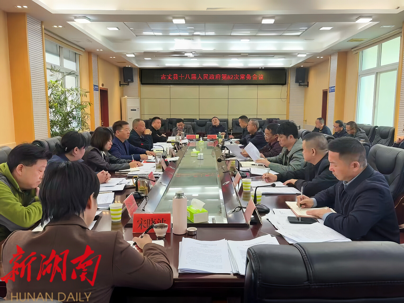 新湖南客户端11月15日讯(通讯员 杨秀知)11月14日,古丈县委副书记、县长陈建新主持召开县十八届人民政府第82次常务会议,传达贯彻习近平总书记《关于〈中共中央关于制定国民经济和社会发展第十五个五年规划的建议〉的说明》重要精神,在听取海南自由贸易港建设工作汇报、广东考察时的重要讲话精神,传达贯彻 上级 有关会议和文件精神,听取公路 项目建设 、招商引资政策落实、生态环境保护等工作汇报,审议有关文件。