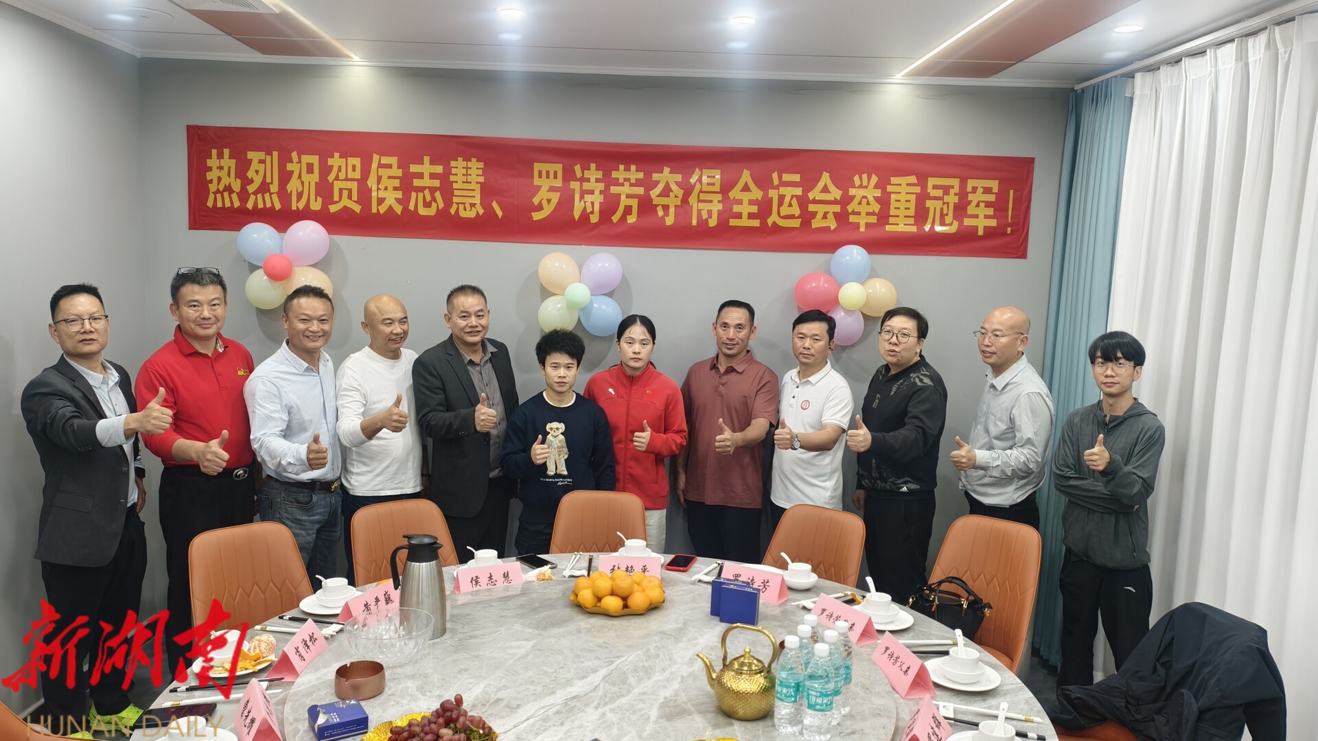 新桂阳11月15日讯(通讯员 杜齐丽 侯方华 周欢)2025年11月14日,广东东莞东坑有风小院暖意融融、乡音盈耳,一场温馨而隆重的庆功宴在此举行,热烈祝贺桂阳籍举重健儿侯志慧、罗诗芳在第十五届全国运动会上勇夺金牌,为家乡赢得至高荣誉。