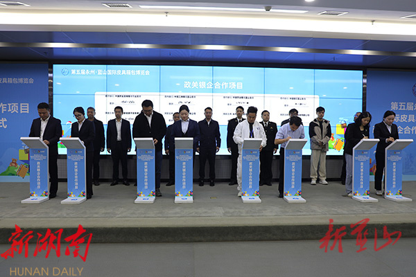蓝山县举行第五届永州·蓝山国际皮具箱包博览会政关银企合作项目签约仪式