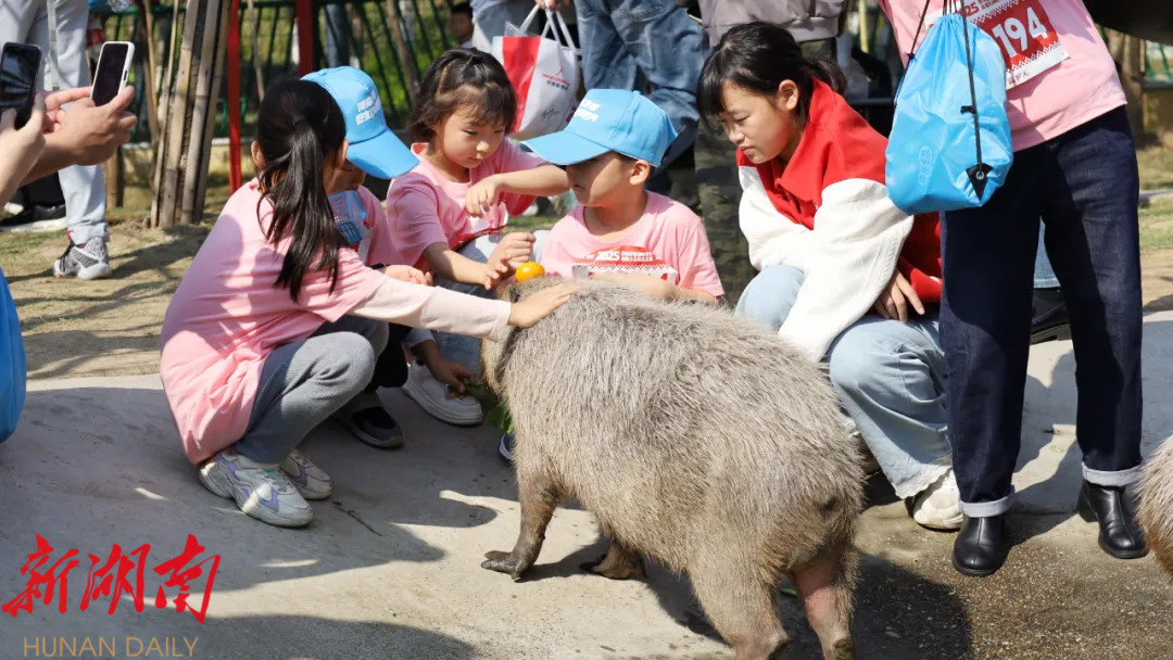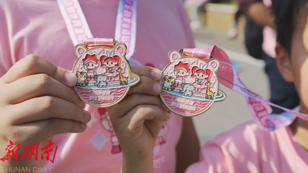 10时15分,随着发令枪响,大将组、中将组、少将组的小选手们在家长的陪伴下依次出发。大家或奋力奔跑、或疾步快走,也有的暂时停下脚步,和园区萌宠热情互动、拍照打卡,定格快乐瞬间。大象、长颈鹿做“陪跑员”,水豚、东北虎当“啦啦队”,从起点到终点,大家行进在6公里长的赛道上,就像是穿越动物王国,欢笑声、加油声不时回荡在湖南常德野生动物世界。