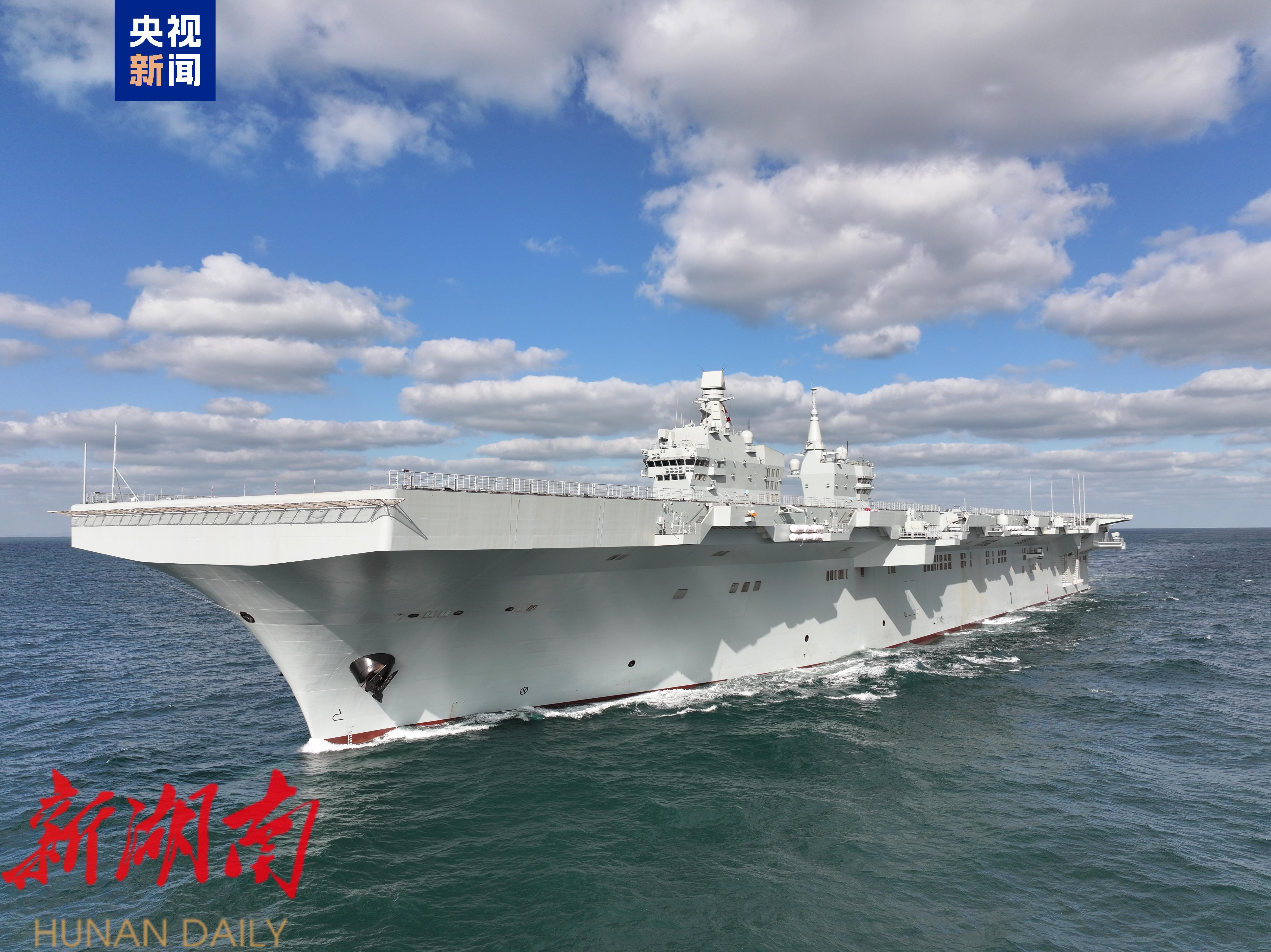 总台央视记者 李笑琪: 伴随着温暖的阳光和徐徐的微风,海军四川舰顺利完成首次航行试验任务,缓缓驶向码头。四川舰满载排水量4万余吨,它独有的双舰岛设计也让这艘舰艇更容易被识别。四川舰还创新应用电磁弹射和阻拦技术,可搭载固定翼飞机、直升机、两栖装备等。这次试航期间,对四川舰动力、电力等系统设备进行了一系列测试,达到了预期效果。